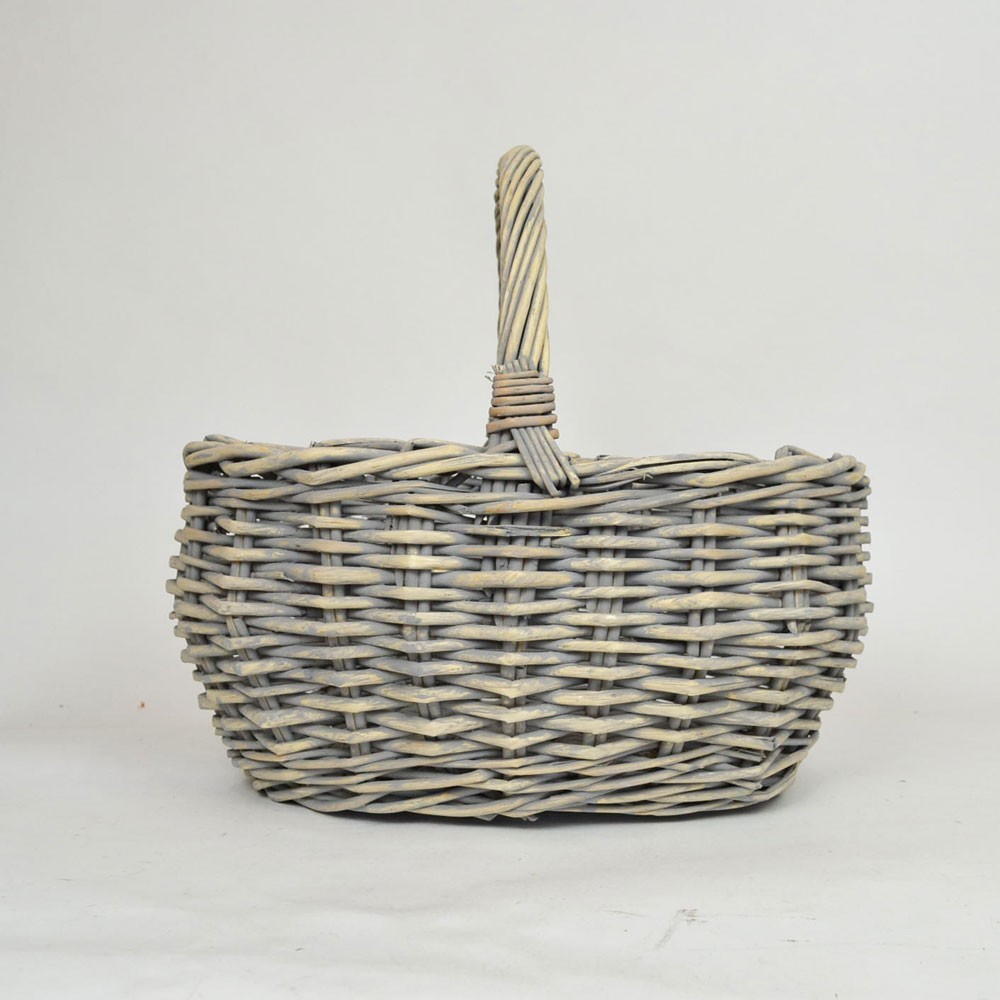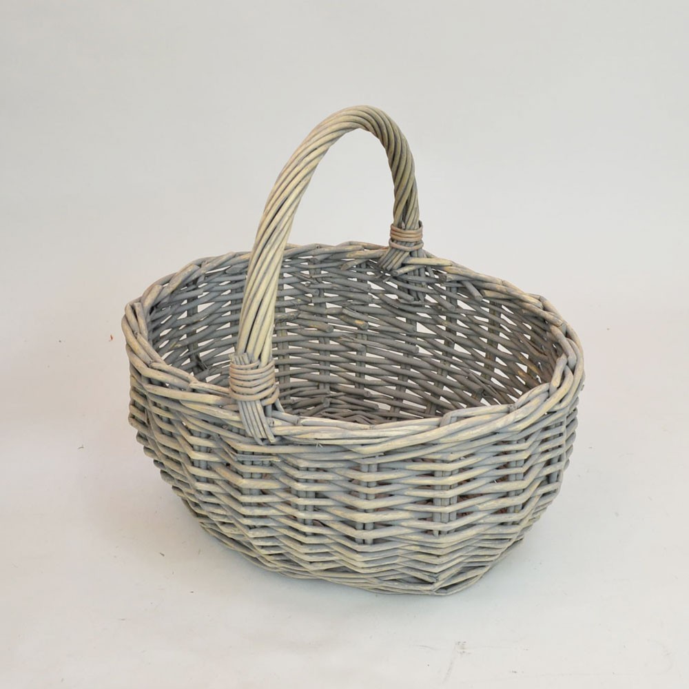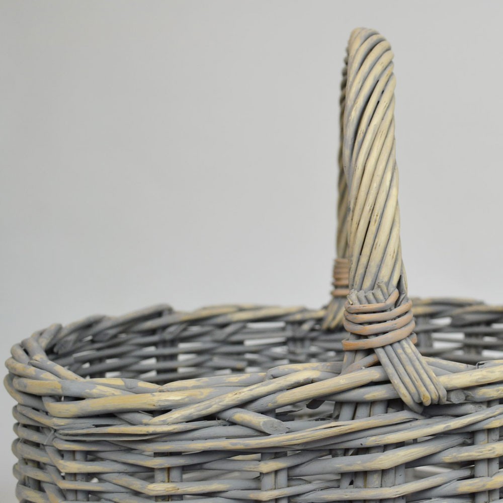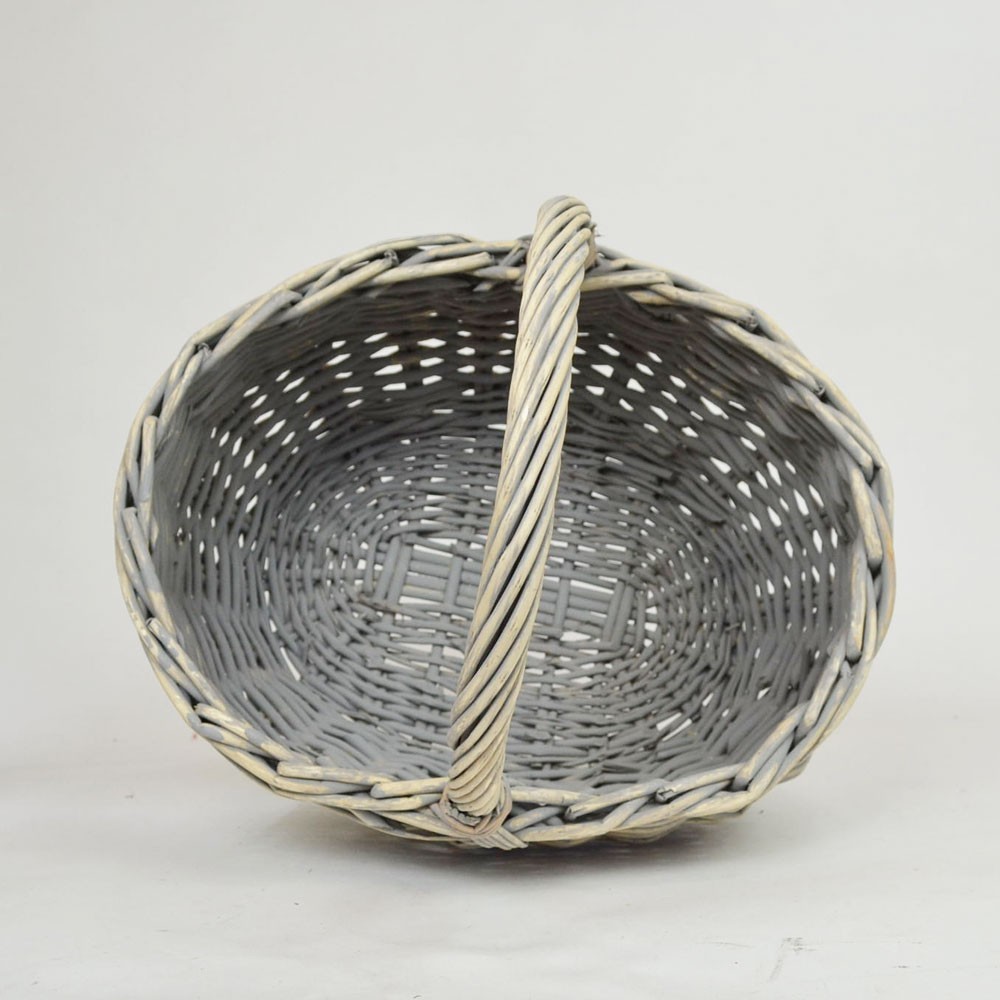 柳を編み上げ、薄いグレーの塗装を施しています。