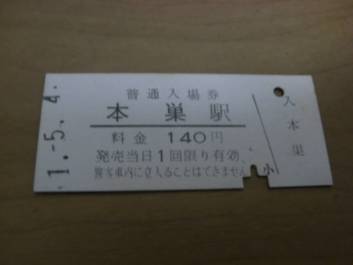 樽見鉄道 本巣駅 普通入場券 140円 平成1年5月4日