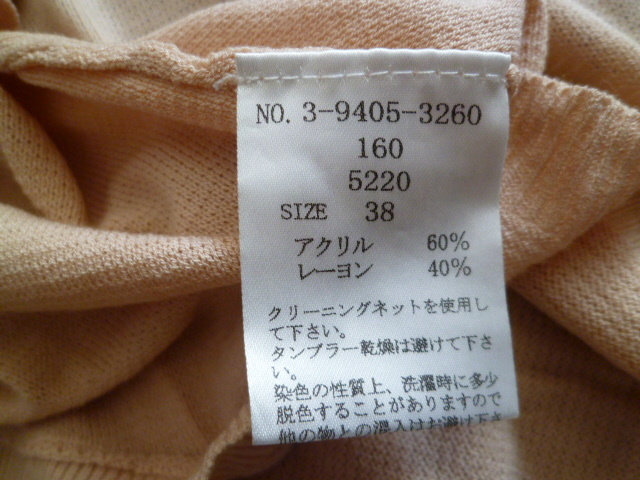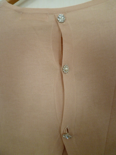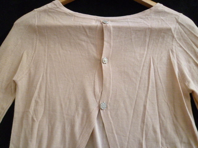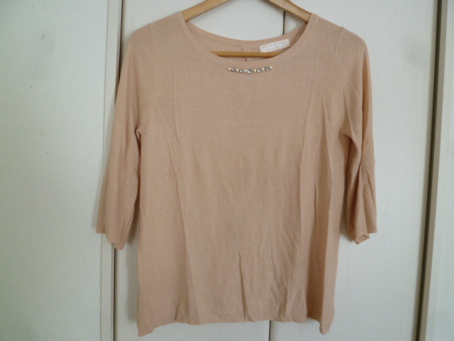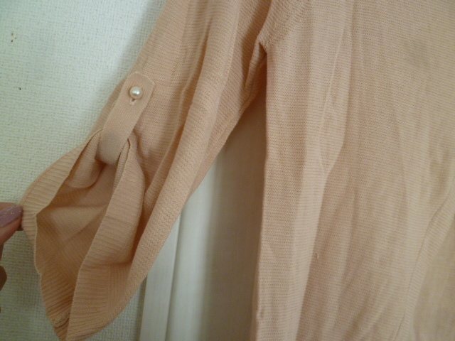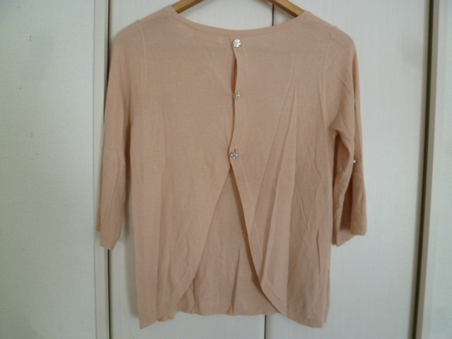 LAISSE PASSE/レッセパッセ△くすみピンク系パールビジュー背中ボタン重ね着アウターニット38/姫系七分袖△T415