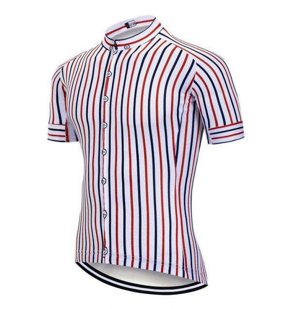 新品 サイクルジャージ Mサイズ No53 ストライプ フルジップ 半袖 ウェア メンズ サイクリング スポーツ MTB ロードバイク