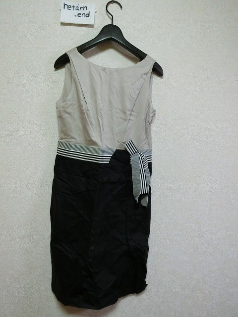 PAULE KA ノースリーブワンピース 40 ベージュ ブラック ポールカ