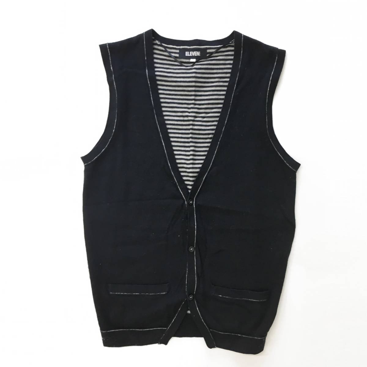 送料無料■程度良好【ELEVEN PARIS イレブンパリ】 カットソーベスト メンズ ブラック切替 S