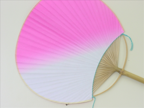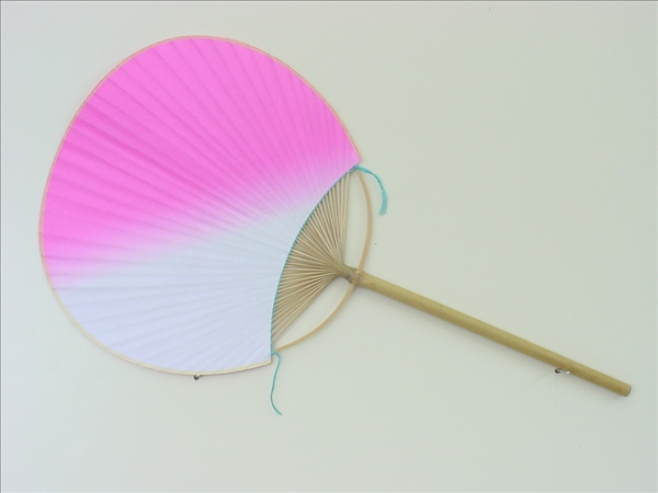 129,踊り団扇 丸柄小丸うちわ 竹柄 ピンク