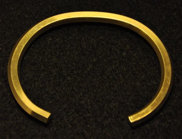 対辺5mmの真鍮六角棒から製作しております。シンプルなバングルです。