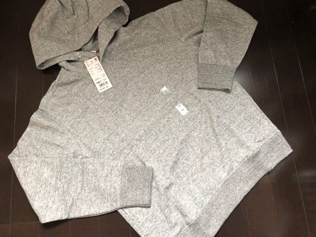 ユニクロ キッズ スウェットプルパーカ 長袖 160cm パーカー トレーナー グレー 裏毛