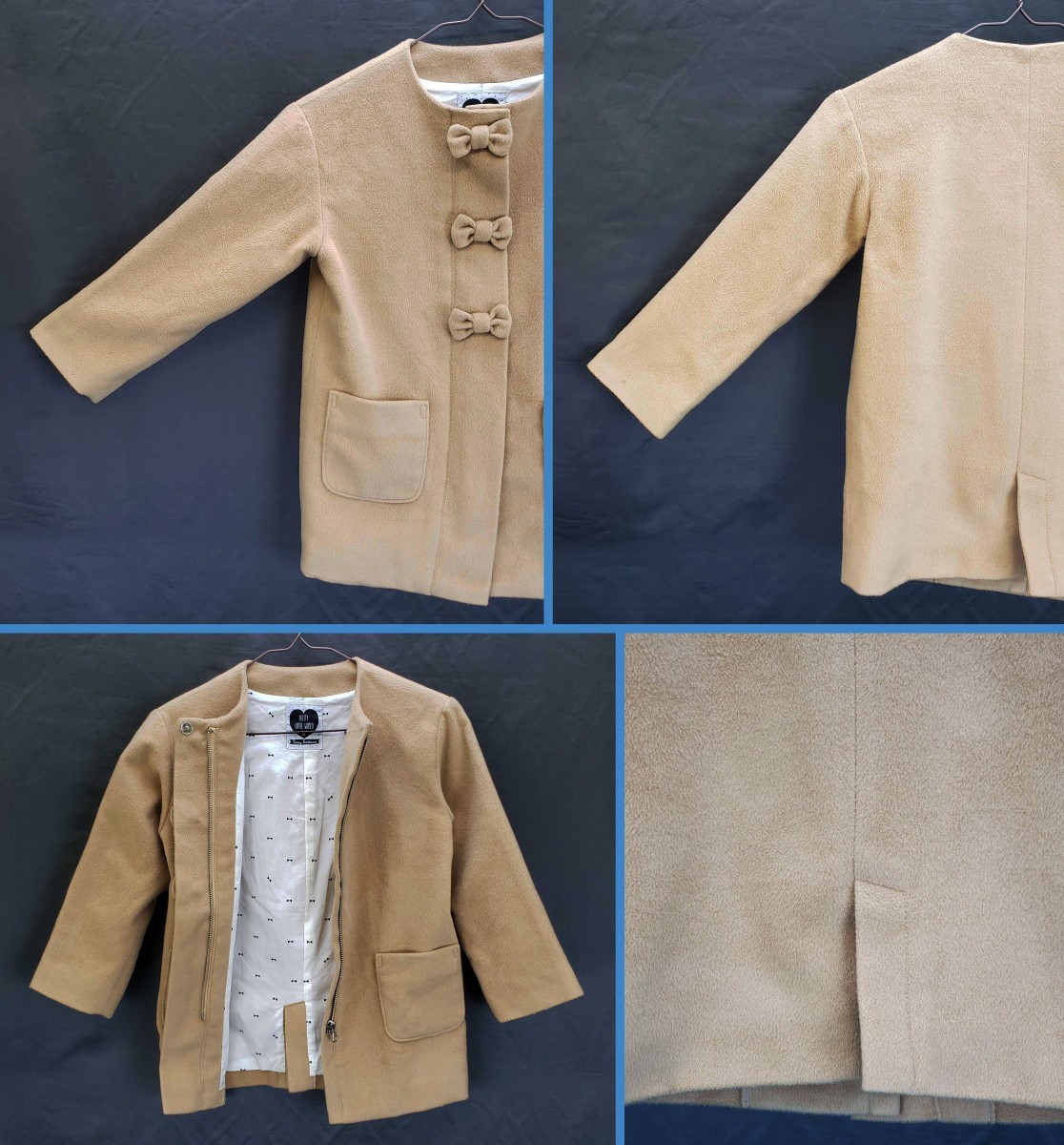 ★ 商品名 ★ Sunny Landscape コート ★ 状態 ★ 中古 目立った傷や汚れ無し。 ※※※※※※※※※※※※※※※※※※※※※※※※※※※※※※※※※※※※※※※※※※※※※※※ 中古品ですので物により少々の生地の傷み、汚れ等がある場合が御座います事を 予めご了承くださいませ。 大きく目立つ場合は文面などにて記載させて頂きます。 見解は個人差が有ります。 中古品ですので神経質な方のご購入はご遠慮くださいませ。 ※※※※※※※※※※※※※※※※※※※※※※※※※※※※※※※※※※※※※※※※※※※※※※※ ★ カラー ★ 【 表地 】ベージュ 【 裏地 】白に黒の蝶ネクタイ柄 ★ 表記サイズ ★ 120 ★ 平置き実寸サイズ ★ 肩幅 36cm バスト 76cm 袖丈 38cm 着丈 54cm 袖口 12cm 裾幅 39cm ポケット数 ( 2 ) ★ 素材 ★ 【 表地 】 ポリエステル 95% レーヨン 5% 【 裏地(身頃) 】 綿 100% 【 裏地(袖) 】 ポリエステル 100% ◆ 商品コメント ◆ リボンの飾りがとても可愛らしい子供用コート。 表地は柔らかくふわふわした触り心地で 裏地はサラッとした滑らかな肌触りの生地なので着心地抜群。 落ち着いた色合いなので、色々な服に合わせやすい。 厚手のしっかりとした生地で肌寒い冬にピッタリの一着です。 ◆ 当店について ◆ ●障がい者(スタッフ)の就労支援事業所が運営しております。 ●社員がスタッフの健康状態、仕事の内容をチェックし、ミスが無いよう努めております。 ●【 検品、採寸、撮影、梱包、出荷 】等の作業はスタッフが真心を込めて対応いたします。 ●【 商品を受け取ったお客様の喜んだ姿を思い浮かべ 】誠心誠意対応いたしますので宜しくお願いいたします。 ◆ ご対応 ◆ ●営業は平日の10:00~16:00です。(土日祝は対応できません。) ※ページ内のカレンダーを参照下さい。 ●休業日は連絡が出来ませんので【 取引ナビ 】にてご連絡下さい。最短の営業日にご対応いたします。 ◆ 返品について ◆ ●お客様のご都合によるキャンセル・返品についてはお受けできません。 ●記載内容と違う場合や破損等は商品の到着から1週間以内に取引ナビにてご連絡下さい。 ◆ 注意事項 ◆ ●落札後48時間以内にご連絡をいただけない場合、落札後4日以内にお振込みが確認できない場合は不本意ではありますが取り消しさせていただきます。 ◆ 商品について ◆ ●独自のルートから仕入れた大変お買い得なアウトレット商品です。 ●展示品やサンプル品、在庫処分品、タグカット品、訳あり品(小傷やほつれ)等を格安で提供しております。 ※訳ありの場合、箇所を商品説明、または画像でお伝えいたします。 ●モニター環境により、実物と画像の色合いが若干、異なる場合がございます。 ●お安く提供できるよう簡易梱包 + 最安配送方法での発送の為、衣類などは開梱時にシワがある場合があります。予めご了承下さい。 ●平置き寸法は大体の目安としてお考え下さい。タグ等が無い場合もあり、その際は素人採寸になりますので予めご了承下さい。 ◆ 発送(梱包)について ◆ ●発送は週3日を予定しておりますが、土日祝日の発送はお休みです。即日発送は出来かねますので、ご注意ください。 ※ページ内カレンダーを参照下さい。 ●お安く提供できるよう簡易梱包 + 最安配送方法にてお届けします。予めご了承下さい。 ●まとめて取引希望の方は3日以内(最初の落札から72時間以内)であれば可能です。 ●落札者様が[取引をはじめる]ボタンを押した後は同梱できません。 ●同梱の場合は配送方法・送料が変更となる可能性がございますので、取引ナビ等でお問い合わせ下さい。 ※ 上記の注意事項などを理解した上で落札して下さいますようお願いいたします。m(__)m ※ |
