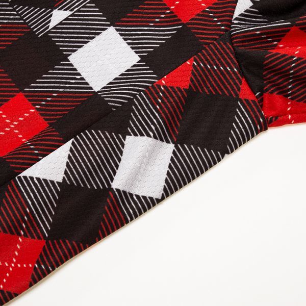 トップスはフルジップタイプ、背面にウェア滑り止め、バックポケット付きです。