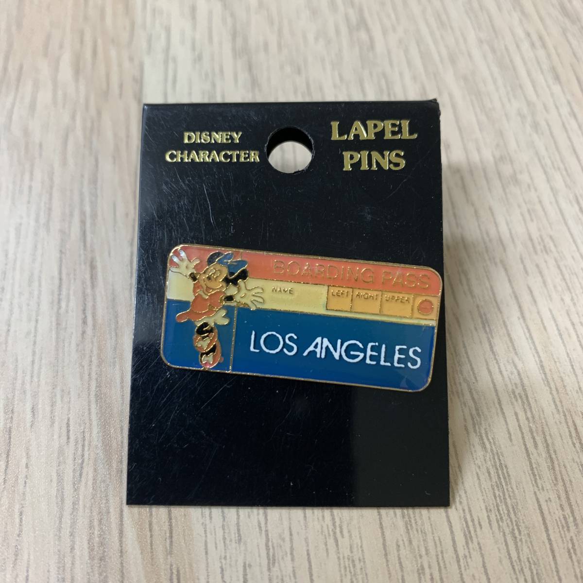 ミニーピンバッジ/LOS ANGELES。BOARDING PASSディズニーピンバッジ、約30年前のものになります。台紙付きの美品です。