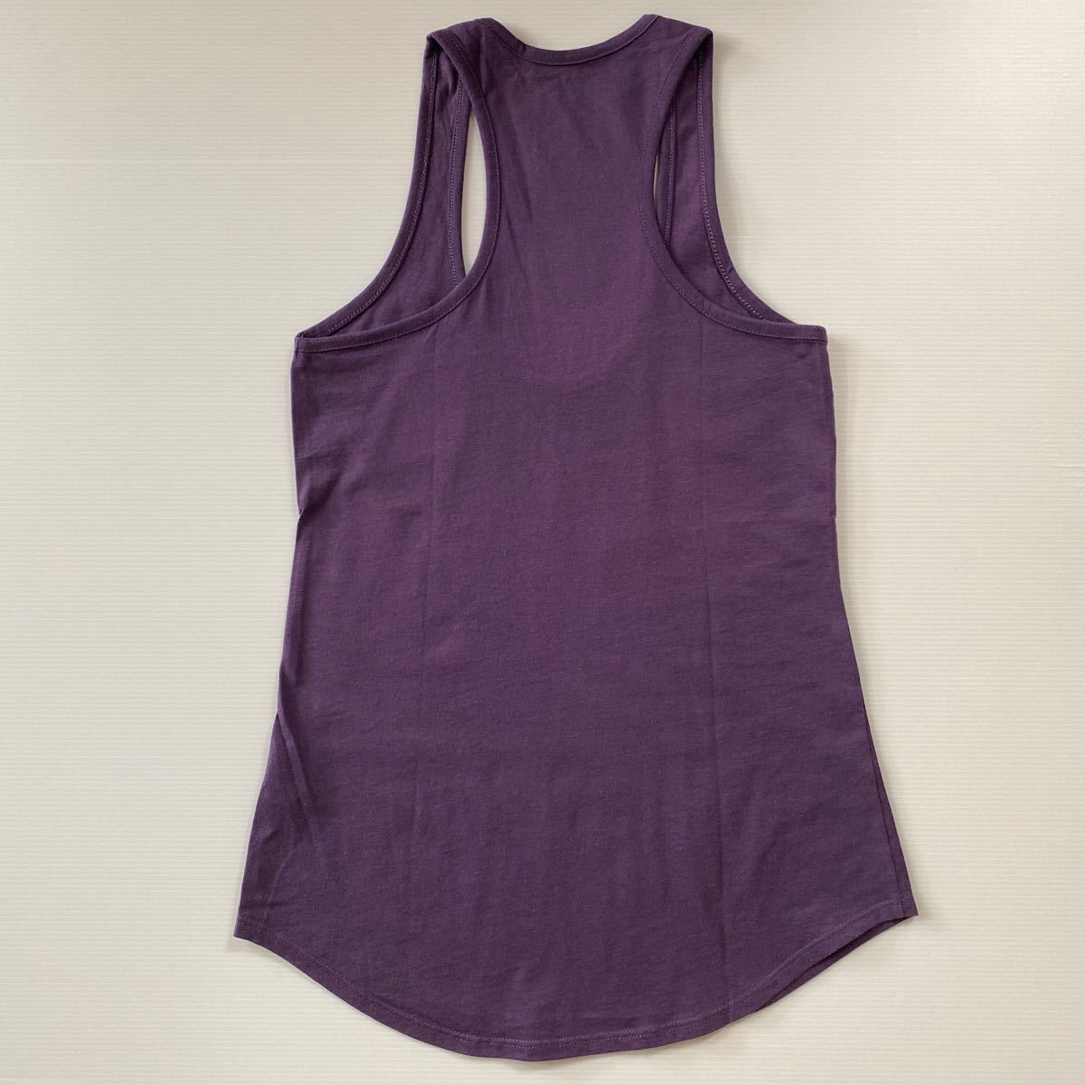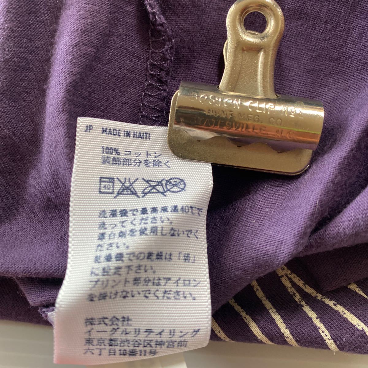 アメリカンイーグルのタンクトップです。スクール風のプリントが素敵!コットン100ですが少しストレッチします。シルエットはウエストがくびれた女性らしいラインになるタイプです。お色は紫にオフホワイトのプリントで、古着風の掠れたようなプリントになってます。