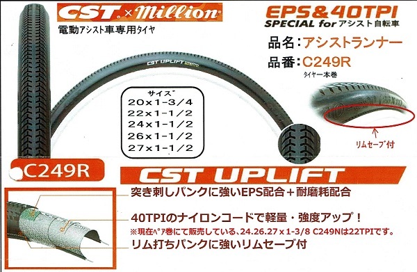 [4025] 20 × 1 3/4 CST C249R 電動アシスト自転車に! (送料相当1400円含む)
