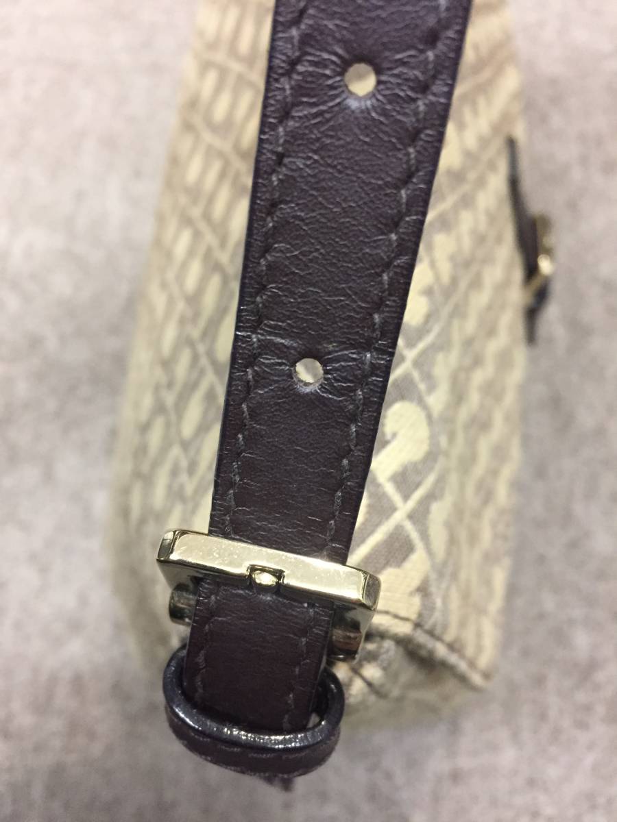 ベージュの総柄のキャンバスとダークブラウンのレザーがマッチしていて、素敵で高級感もありますね。