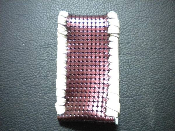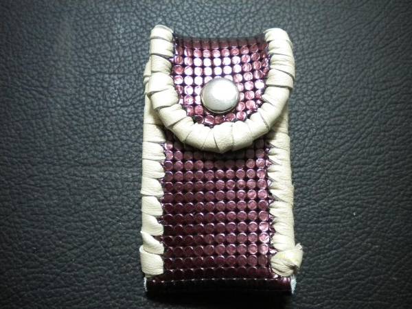 ケース周囲は、パールアイボリーレザーで、かがり仕上げをしました。