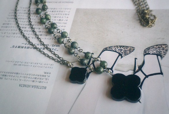 秋色スタイル・・シリーズです♪クロス&クロス・・シックなオニキスのネックレス2点セットです♪大きさ違いのフラワークロスのオニキスにグリーンオパールや繊細なチェーンを合わせて大人のロマンチックしています♪それぞれ単品で着けられても可愛いです♪6ミリのラウンドのグリーンオパールには25ミリ位のオニキスを合わせました♪長さは全長80センチ位で調節自由です♪15ミリのオニキスには繊細なチェーンを合わせました♪長さは全長65センチ位で調節自由です♪お揃いのブレスレットやイヤリングも出品しています♪シンプルで長く着けていただけるデザインを考えて作りました♪ハンドメイドをご理解頂いてノークレーム、ノーリターンでお願いします