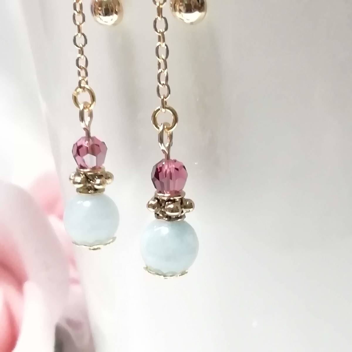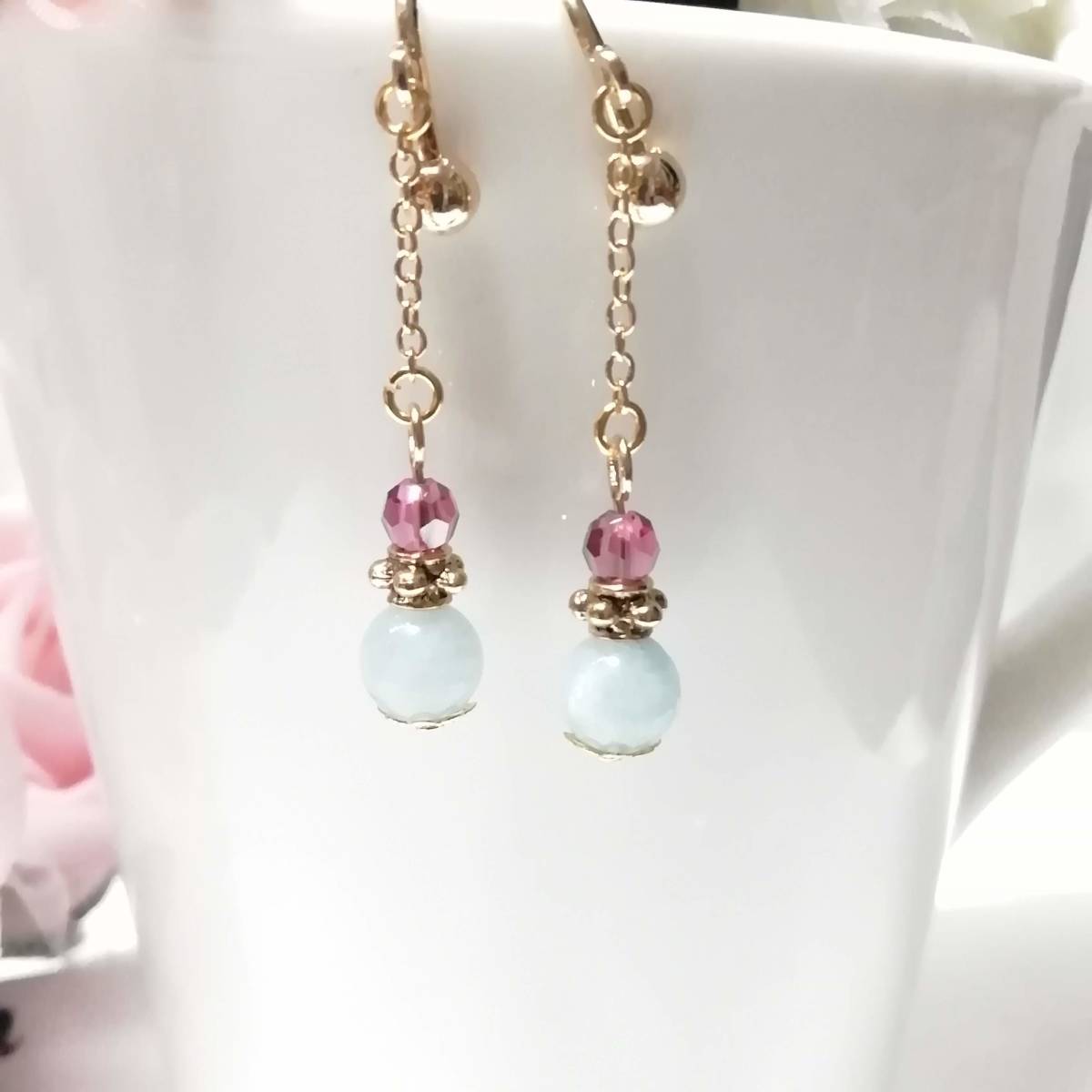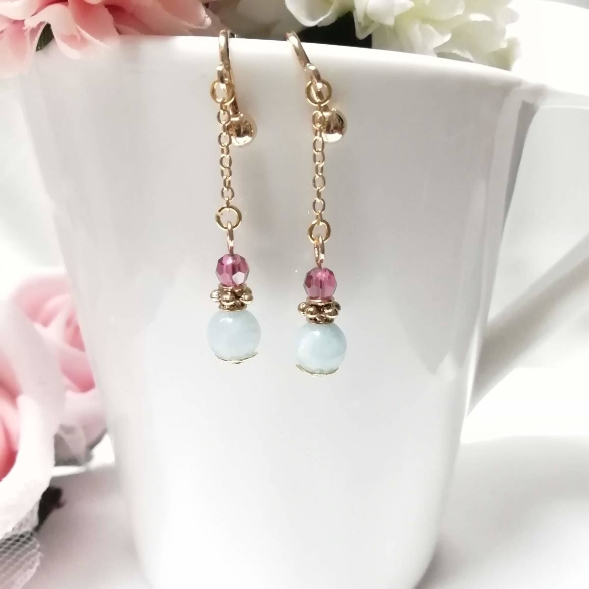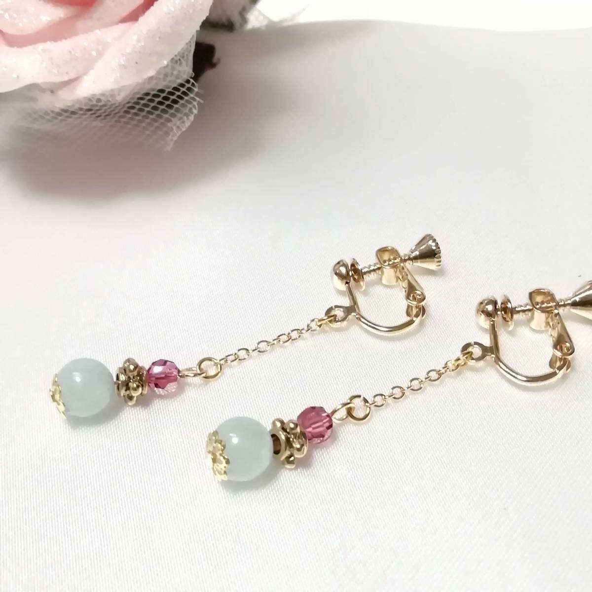 ★商品内容★ 天然石アクアマリンのハンドメイドイヤリング★天然石/アクアマリン/上品/水色/ゴールド/ローズピンク/短め/スワロフスキー/ダイヤカット 天然石アクアマリンの シンプルなイヤリングです。*・.**.・。**.・。*・**。・ ローズピンクとホワイトブルー、ゴールドの組み合わせが 個性的でスタイリッシュな大人の女性らしさを印象付ています*・.**.・。**.・。*・**。・ 普段使いはもちろん、 お洒落のワンポイントにも最適です。*・**.・。**.・。*・**。・. 【素材】 天然石アクアマリン6mm スワロフスキー5000ダイヤカットローズサテン4mm ピューター製スモールサタンリングゴールド 小粒チェーンゴールド 花座(菊華)ゴールド カンより垂れ下がる長さは、約3.5㎝です。 Eー798 ★注意事項★ ***~ご購入前に必ずお読み下さい~*** *・*・*落札後について*・*・* *落札後4日以内にお手続き、ご連絡が無い場合は落札者都合で削除致します。 *発送日指定・ご入金の予定が1週間以上先をお考えの方は、入札の前に質問よりご連絡くださいませ。 予めご了承の上、ノークレーム・ノーリターンでお願い致します。 *・*・*商品について*・*・* *一点一点心を込めて作っておりますが、手作りなため多少の歪み等あるかもしれません。 手作りの味わいと、世界で一つだけの作品とお考えいただければ幸いです。 *デリケートな商品ですので、強く引っ張ったりすると破損する事もあります。 お取り扱いにはご注意ください。 *ご覧のPC、スマホによっては画像と実物の色味が多少異なる場合があります。 *基本イヤリング金具は跳ね上げネジ付き金具にて作成しております。 **ご希望によりピアスへの変更も承っております。 【フックピアス…無料/キャッチピアス…別途追加料金120円】 *その他…樹脂ノンホールピアス(無料)・カン付き樹脂ノンホールピアス(別途追加料金20円)にも変更をお受け致します。 ~ご注文の際にメッセージ欄よりお申し付け下さい~ 尚、金具変更のご希望が無い場合は、掲載された写真の金具にてお送り致します。 *金属アレルギーや化学物質アレルギーなどへの対応はしておりませんので、ご心配な方はご遠慮下さいますようお願い致します。 *永くご愛用頂くために、ご使用後は柔らかい布等で軽く拭いてください。 *・*・*プレゼント用梱包のご要望もお受けいたします*・*・* *その際は、梱包費用が別途で必要となりますのでご注意ください。 また、ご希望の梱包タイプによって、発送方法が変わりますので、送料が別途必要となります。 プレゼント用梱包タイプ 【袋→100円】 発送方法【クリックポスト(送料無料)】 プレゼント用梱包タイプ 【箱→200円】 発送方法【レターパックプラス(別途520円)】 袋タイプは【合計100円の追加料金】、箱タイプは【合計720円の追加料金】となります。 ◆ご希望の場合は、必ず商品ページをウォッチリストに登録した上で落札前に質問にてお問合せ下さい。◆ ◆ご希望を承り次第、一度出品を取り消し、プレゼント用梱包費用、送料などを追加した金額へ変更し、再出品致します。◆ *再出品後に再度検索して頂く手間が省けますため、プレゼント梱包をご希望の場合は必ずウォッチリストへのご登録をお願い致します。 金額変更後の再出品から3日以内に落札されなかった場合、誠に勝手ながら購入する意思がないとみなしまして、元の金額へ修正致します。 また、修正後、再度プレゼント用梱包のご希望のお問い合わせを頂きましても、お断りをさせていただきますのでご注意ください。 ご不明な点がございましたら、落札前に質問よりお願い致します。 ***ご質問について*** *ご購入前にお願い致します。 日中は仕事をしておりますので、ご返事が直ぐに出来ない場合がございます。 出来る限り早い対応を心がけますが、ご了承ください。 また、発送までには、お振込み確認後、翌日の発送を心がけておりますが、仕事の都合により2~3日程かかる場合がございます。(その際にはナビにてご連絡いたします) お急ぎの場合は、極力対応いたしますが、場合によっては対応致しかねる事もあります。ご了承下さいませ。 | |||