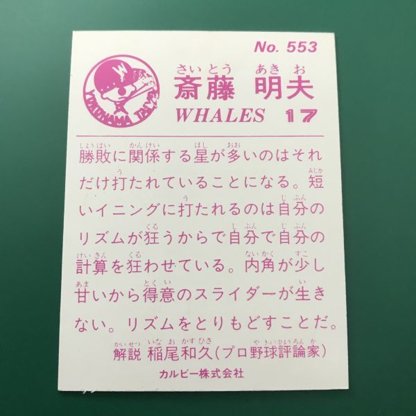 美品 1983年 カルビー プロ野球カード 83年 553番 大洋 斉藤 ①  【管理NO:3-15】