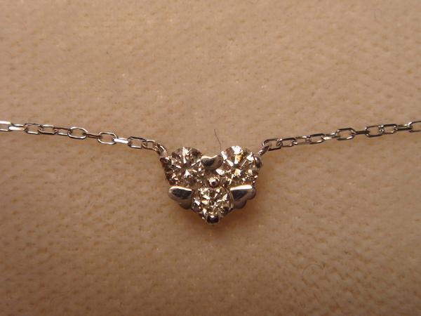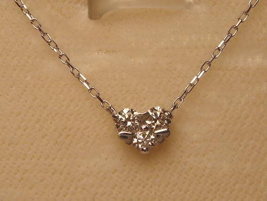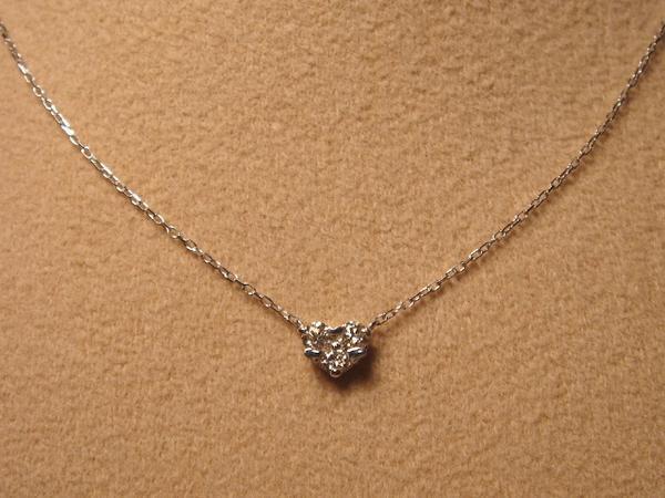 大粒ダイヤ3ピース合計0.20キャラットがセットされたハート型のプチネックレス。