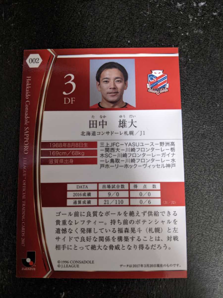 即決★Jカード2017 コンサドーレ札幌 田中雄大