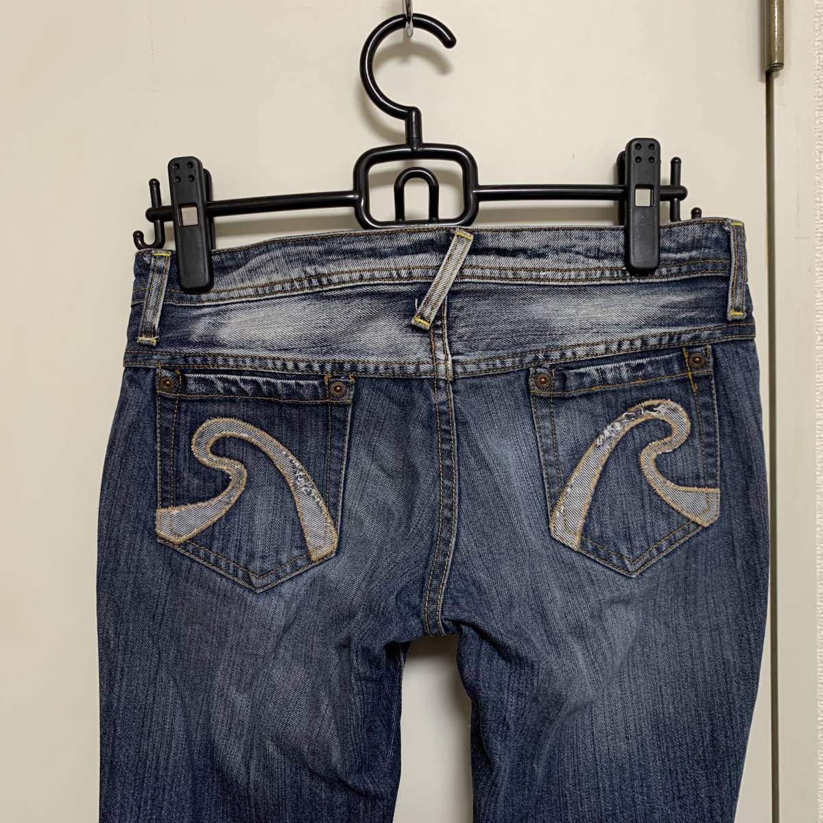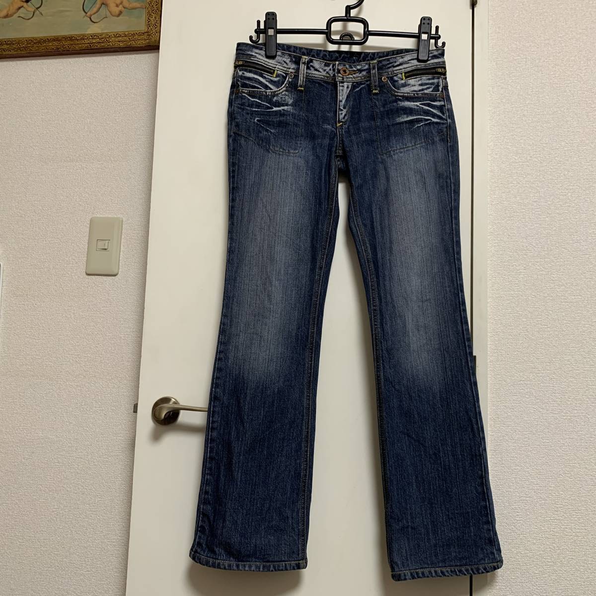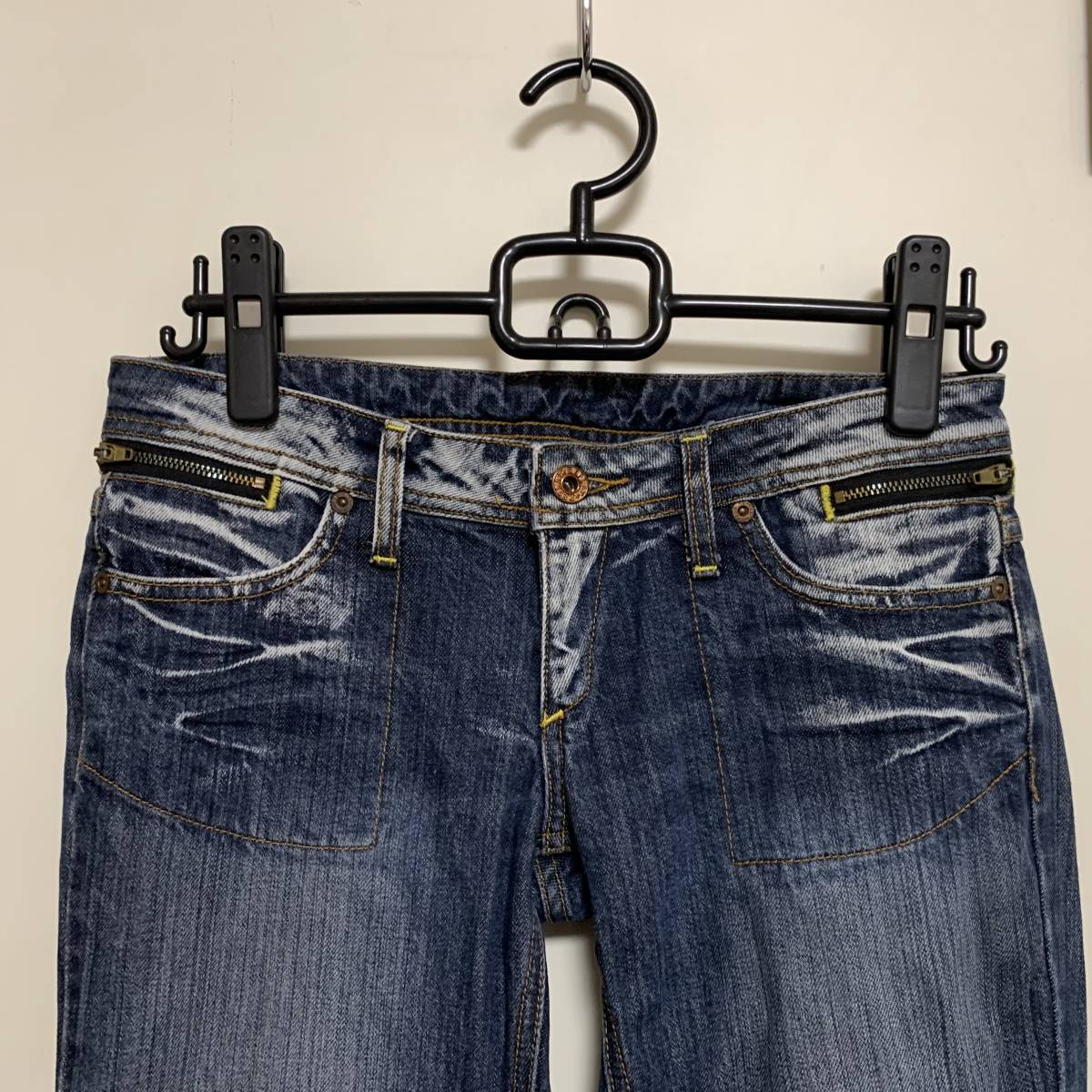 ★サイズ:W:26インチ:ウェスト(腰囲):76cm、股上(前):20cm、股上(後)26cm、 股下:78cm、渡り幅:25cm、裾幅:21cm。