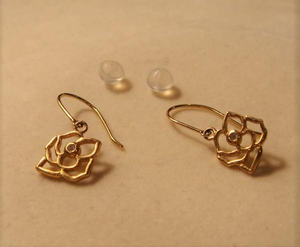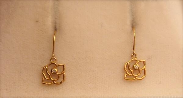 透かし模様でバラの花を形作り、花芯にダイヤを1pcセットしました。