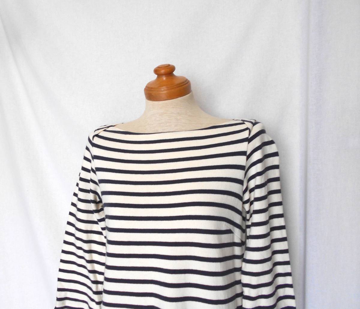 | ボートネックデザインで首まわりがすっきりと見える効果があります。 | ||