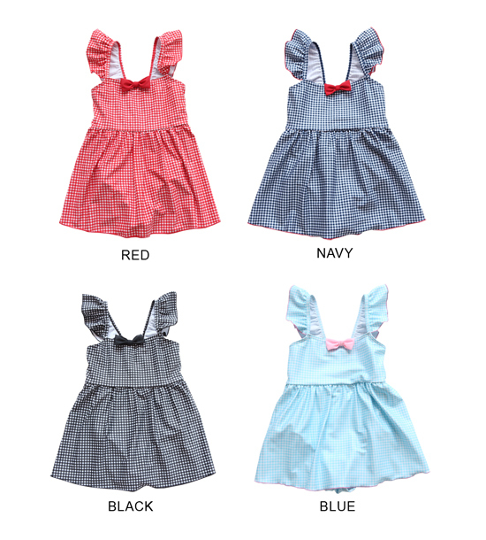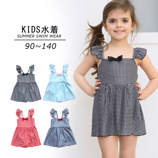 キッズ ワンピース 水着 ギンガムチェック 90cm ブラック