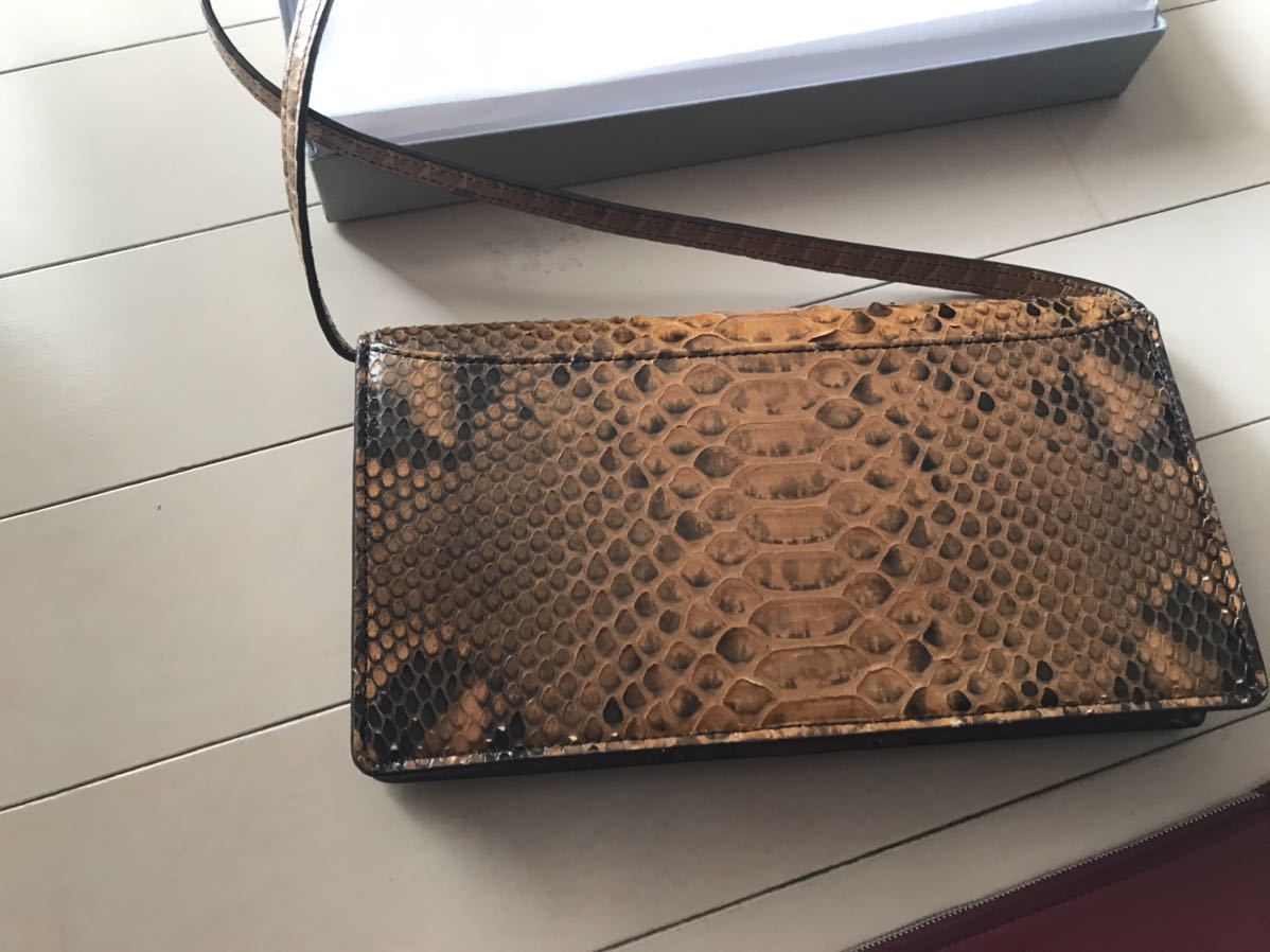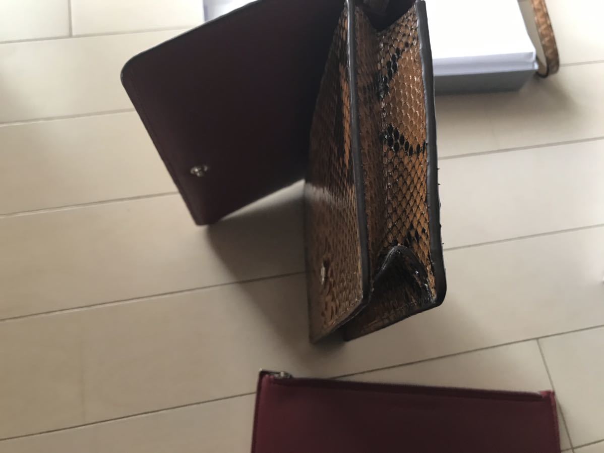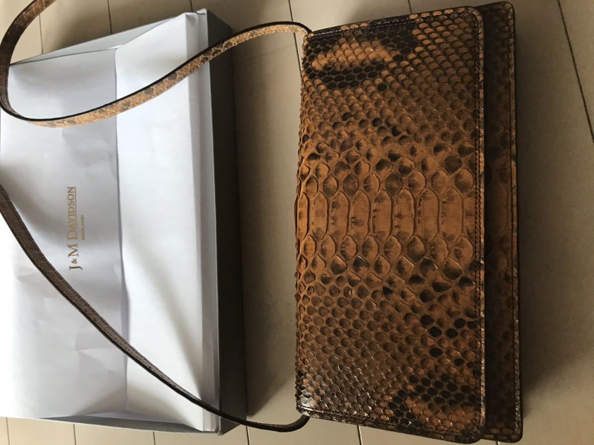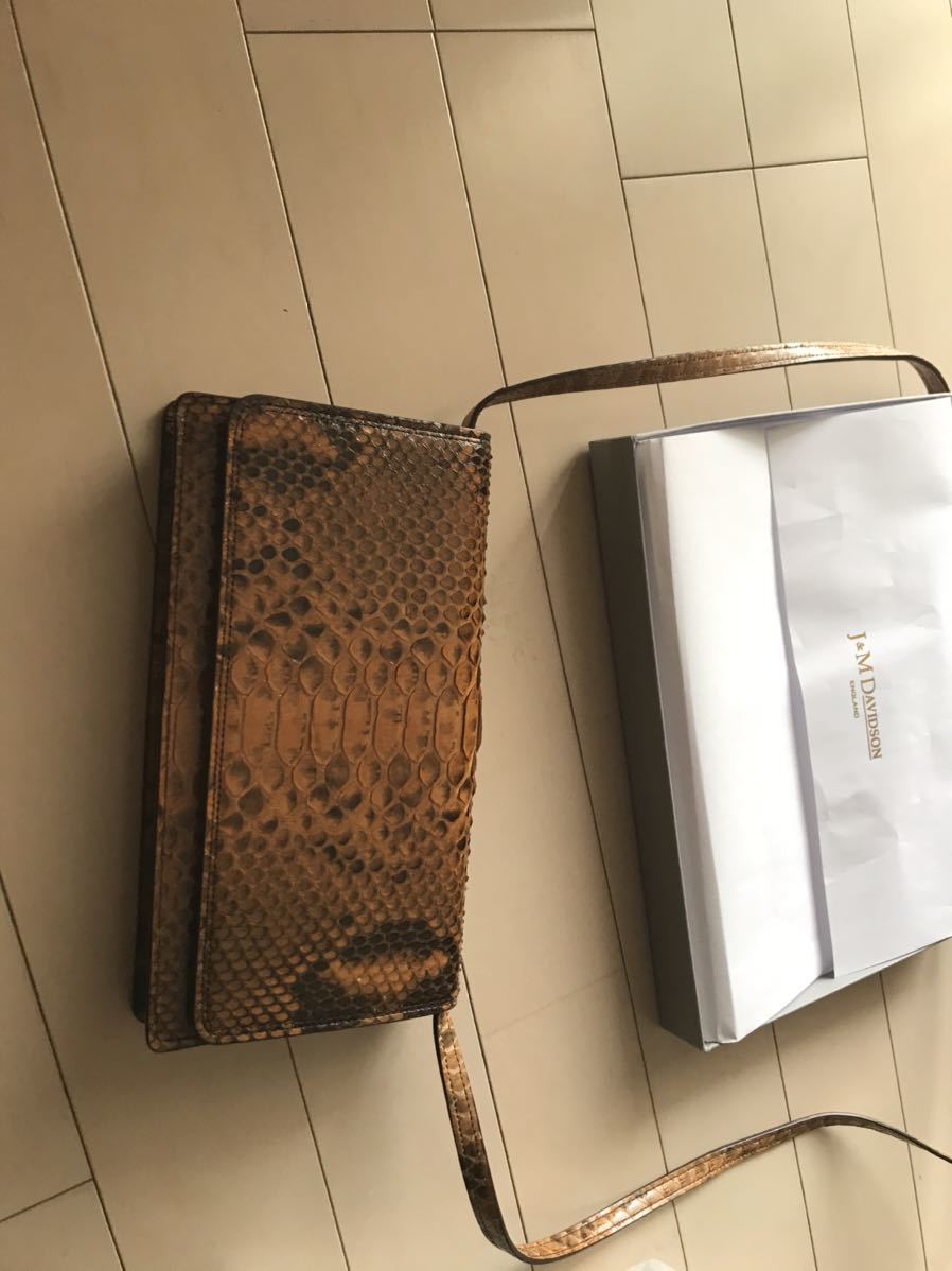 新品未使用品J&MDAVIDSONパイソン革クロスボディ ウォレットの出品です。素材:パイソン革(型押しではありません。)(型押しではないので、加工、質感、風合い等、画像と異なる場合がありますので、気になる方は事前に必ず確認してからのご入札をお願い致します。)幅:21.5 高さ:12 奥行き:3フラップタイプのロングウォレットポーチ。取り外し可能なショルダーストラップとファスナー付きミニポーチが付属され、ウォレットバッグ、クラッチ、バッグインバッグとなっています。ライニングは深みのあるバーガンディカラーです。中にカードスロット6つ、ロングスロット1つが備えられており、携帯電話やハンカチなども入れられる収納性です。