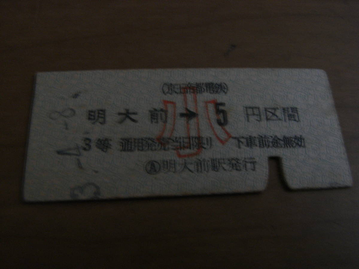 京王帝都電鉄 明大前→小5円区間 昭和33年4月8日 明大前駅発行