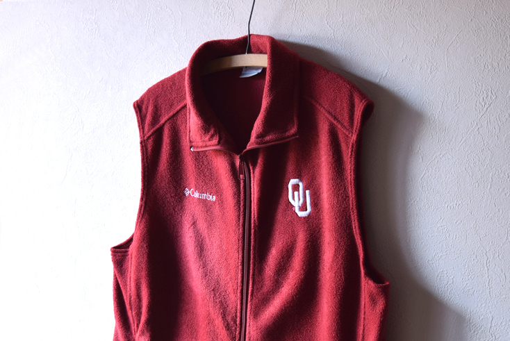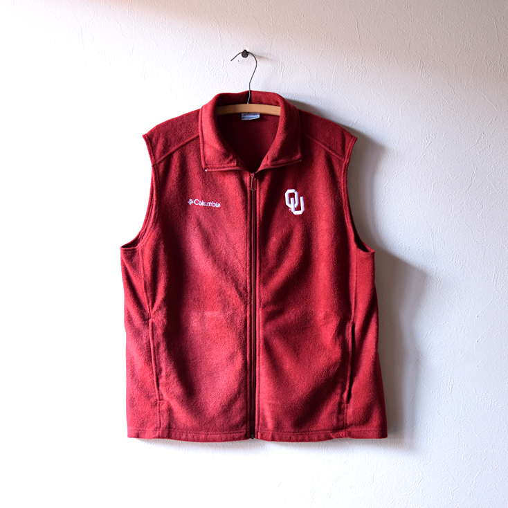 コロンビア オクラホマ スーナーズ フットボール アウトドア インナー フリースベスト メンズL エンジ色 Columbia DD0082