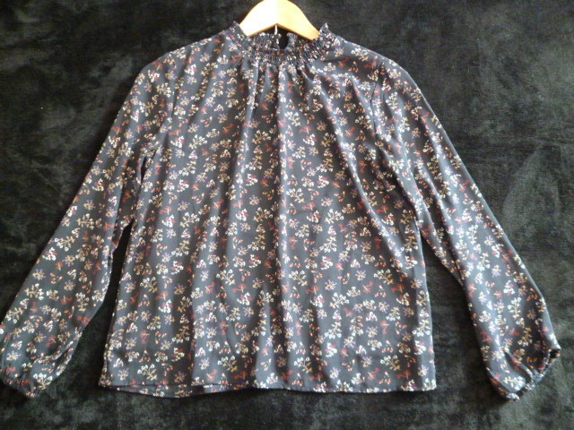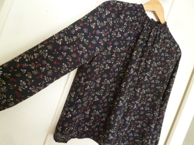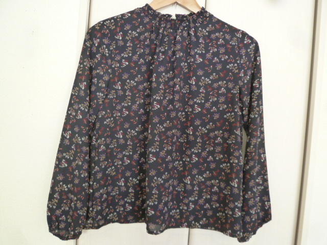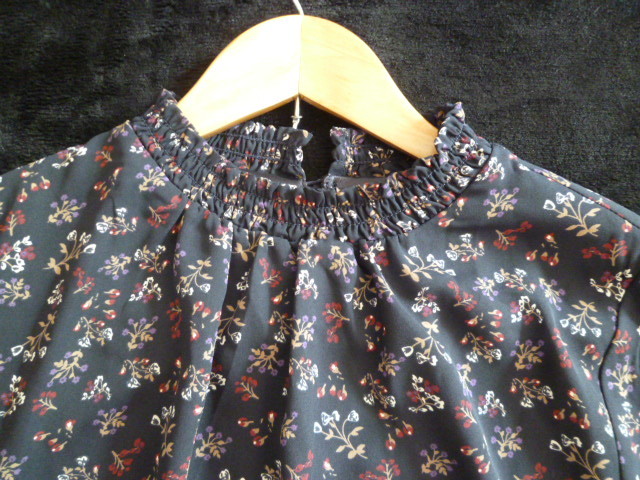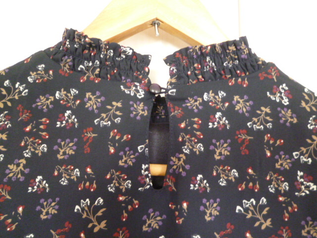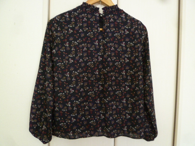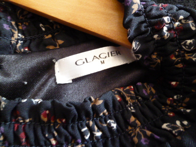 GLACIER/グラシア△黒小花柄シフォンブラウスカットソーM/ブラック長袖トップス△T416