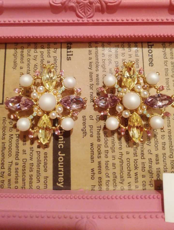 ゴールドカラーに、黄、パープル、ピンク系ビジューが付いたキラキラと輝く商品です♪(#^.^#) 定価7560円☆ 格安ですのでNCNRで御了承いただける方のみどうぞ宜しくお願いします♪ 他にも可愛い物を沢山出品しておりますので是非ご覧下さい(^_-)-☆ まとめて取引はごめんなさいですが、同梱は大歓迎です♪ 必ず自己紹介をご覧くださいませ!!