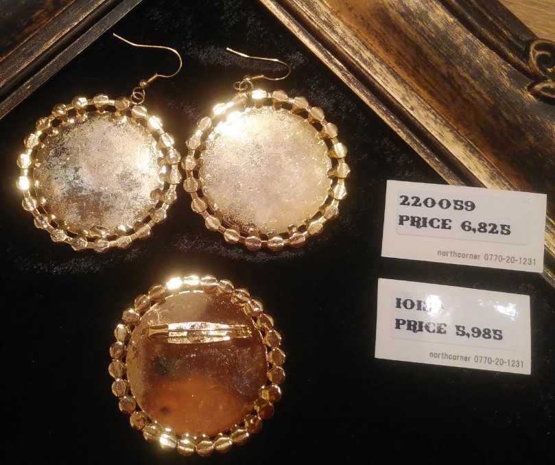 こちらは未使用保管品です♪ 状態は、裏側にはあまり目立たないレベルの小傷、くすみが見受けられますがひどいものではないと感じます♪ モチーフのサイズはピアス、ブローチ共に直径約4.3センチほど♪(素人採寸ですので目安でお願い致します♪) ゴールドカラーに、シルバー系ラインストーンが付いたキラキラと輝くピアスとブローチの2点セットです♪(#^.^#) 定価はピアス6825円、ブローチ5985円☆ 格安ですので画像でご判断の上、NCNRで御了承いただける方のみどうぞ宜しくお願いします♪ 他にも、同系の可愛い物を沢山出品しておりますので是非ご覧下さい(^-^) まとめて取引はごめんなさいですが、同梱は大歓迎です♪ 必ず自己紹介をご覧くださいませ!!