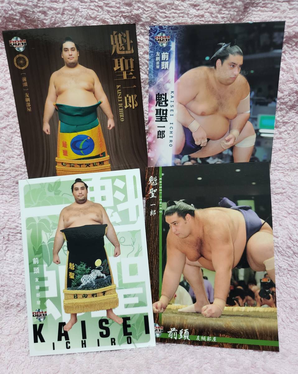 ベースボールマガジン社(BBM社)より発売された「大相撲カード」に封入されておりました魁聖一郎関のレギュラーカード4枚セットになります。