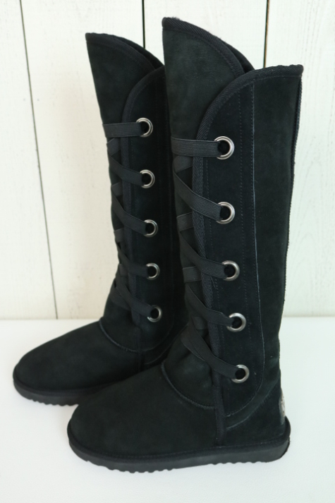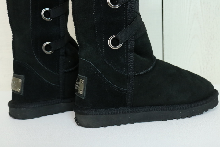 【美品】☆LOVE COLLECTIVE:編上げ ムートン ロングブーツ 5(23.0cm相当)/Australia/UGG/オーストラリア/レースアップ/ブラック