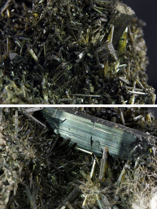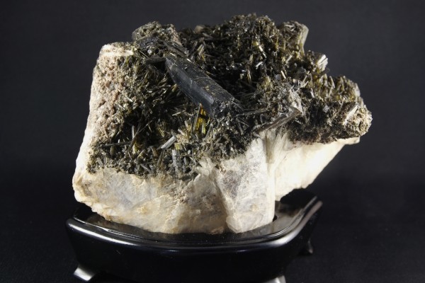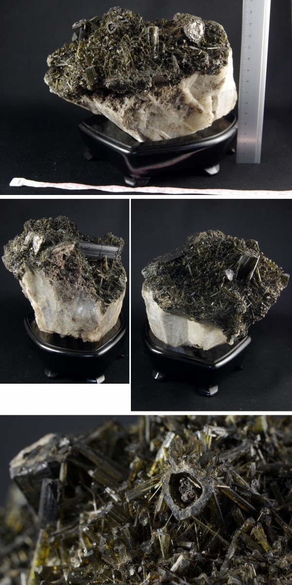 こちらは柱状結晶をしたグリーントルマリンがびっしりと詰まったかなりレアな観賞用の結晶です。