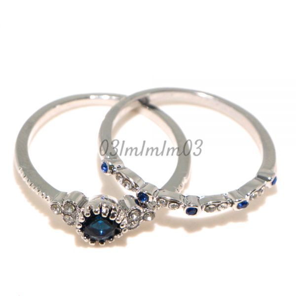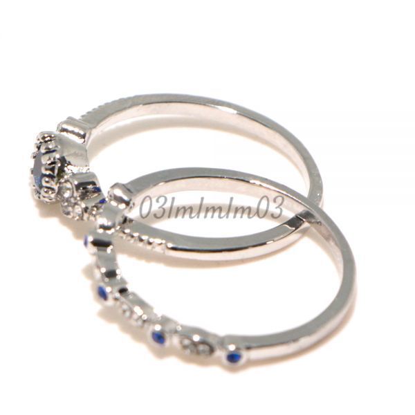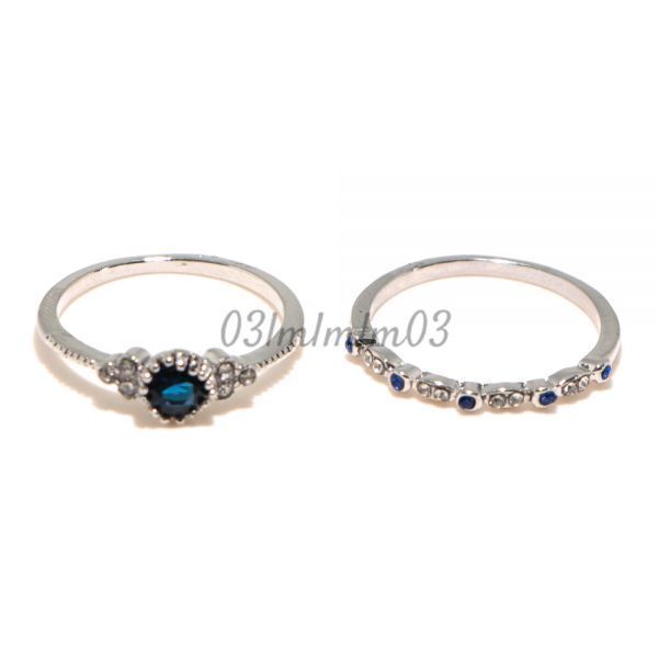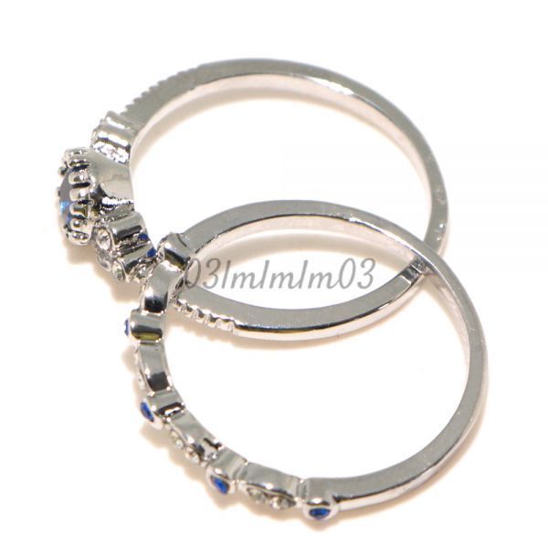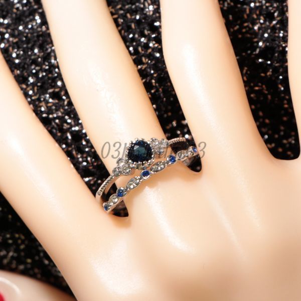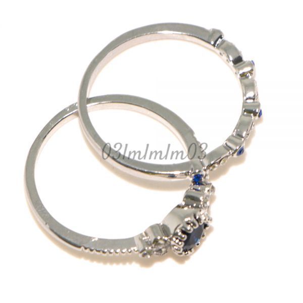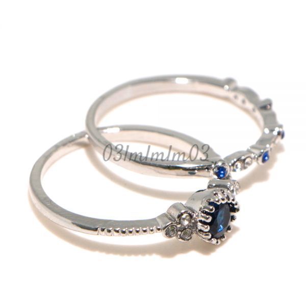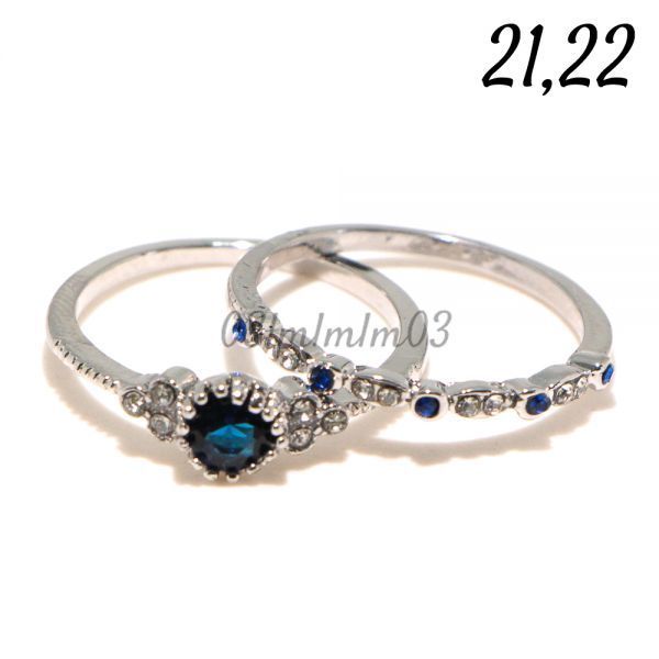 【送料無料・即決】D0521 リング 2連 21号 22号 人工石 サファイア シルバー 華奢 人気デザイン インポート 指輪 大きいサイズ