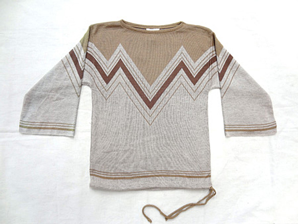 ビンテージ レディース 60S 70S アース カラー 総柄 ベルスリーブ ニット セーター レア ボートネック ジグザグ 茶 ブラウン アクリル 希少