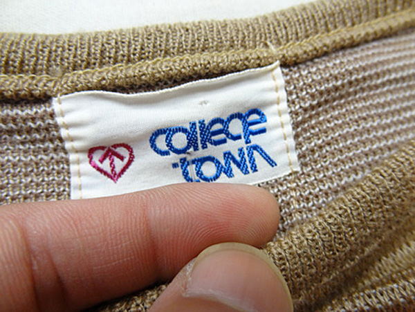 商品説明:ヴィンテージ「COLLEGE TOWN」 60~70'S総柄ボートネックベルスリーブニット