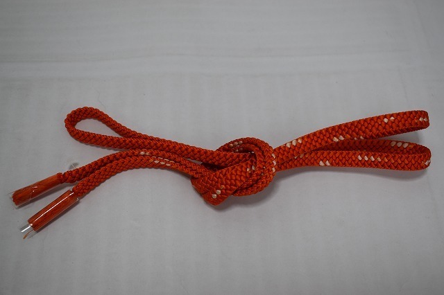 帯締め 正絹 平組 朱色 和装小物 中古美品 oj23 ★喜香★