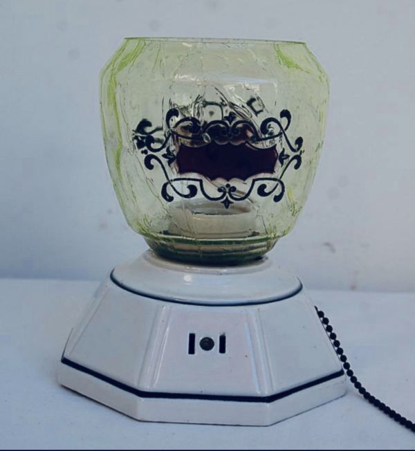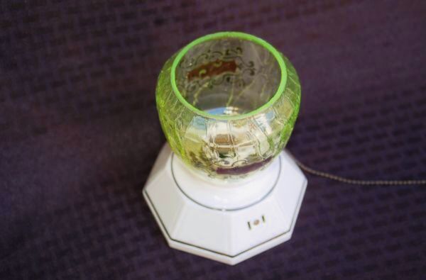 年代 :1900's~1940's辺り (アールデコ時代) サイズ :全体 高さ 15.5cm / :シェイド 深さ 9.5cm x 直径 11cm / ベース 底面 幅12.5cm x 幅 12.5cm :(電球サイズ 口金) E26(26mm) 素材 :ポースレン(磁器) / ウランガラス 重さ :約 1.1kg 製造国 :アメリカ、ニューヨーク ブランド :P&S ALABAX アメリカで買い付けたアンティーク、 アールデコ、シーリングランプのご紹介になります。 シルンプルなアールデコデザインになり、 非常に珍しいウランガラスのランプシェイドになります。 チェーン式のスイッチ付きになり、 コンセントの差し込み口が付いておりますので、コンセントの使用も可能です。 ランプは直接天井に取り付け、配線は天井の裏で直接繋げるタイプになります。 ビス4本で天井へお取り付け頂けます。 お取り付けの際はプロの方に依頼をお願い致します。 比較的に綺麗な状態で残っており、破損はございません。 オシャレなお部屋のライティングとして、お楽しみ頂けます。 古い物のため細かいキズや使用感はありますので アンティーク品として理解頂ける方のみ入札下さい。 サイズは出来る限り正確に測っておりますが、多少の誤差はご了承ください。 写真をしっかりとご確認の上、入札して下さい。 (神経質な方はご遠慮下さい) 質問などありましたらお気軽に問い合わせ下さい。 尚、細かい写真など詳細をご希望の方は拡大写真を送りますので、質問欄にご希望の旨とメールアドレスをお載せ下さい。 (ご質問内容は公開される事はございません。ご安心下さい) | |||