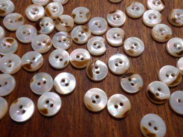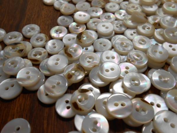 アメリカのミシシッピ川で採取された淡水貝を加工した白いボタンです。