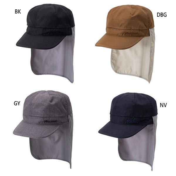 ★Marmot マーモット ベースボールキャップ ブラック M 57.5 サイズ調整 日除け付き 2WAY ワークキャップ トレッキング UV アウトドア 帽子