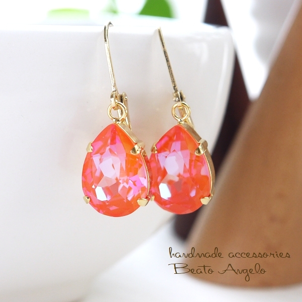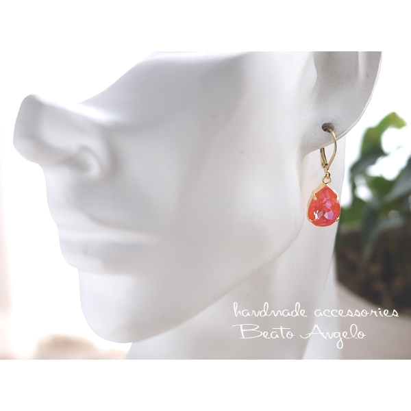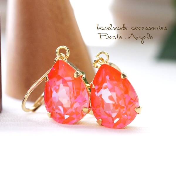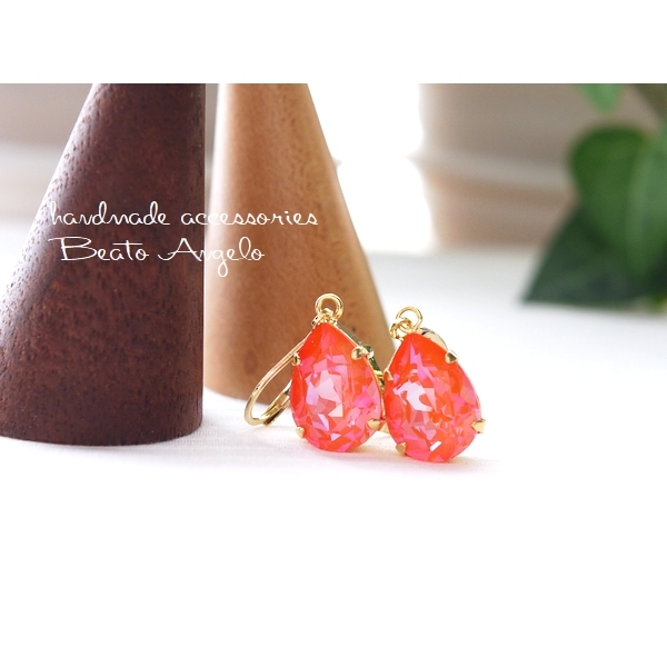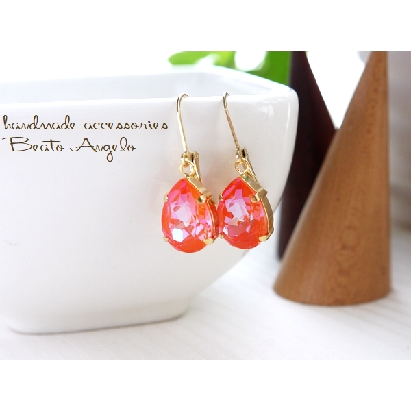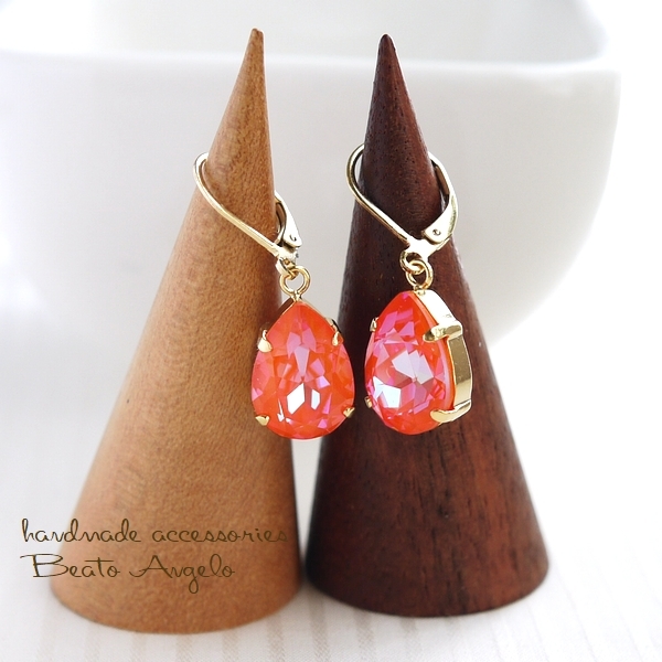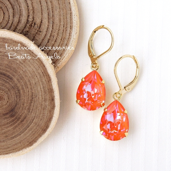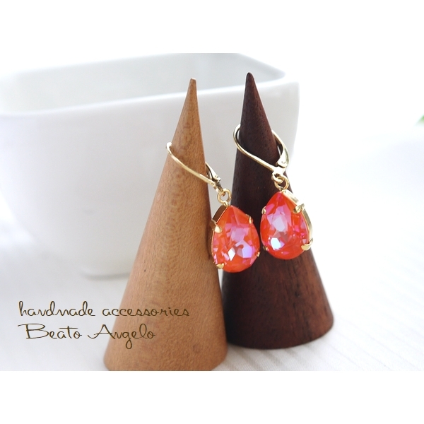 ◇◇+angelo+スワロフスキー 4320のピアス(p-113) Cオレンジグローディライト 一粒 ドロップ 春 フレンチフック