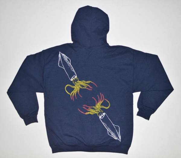 房総アーティストによるオリジナルデザインのヤリイカパーカー、フード付き!