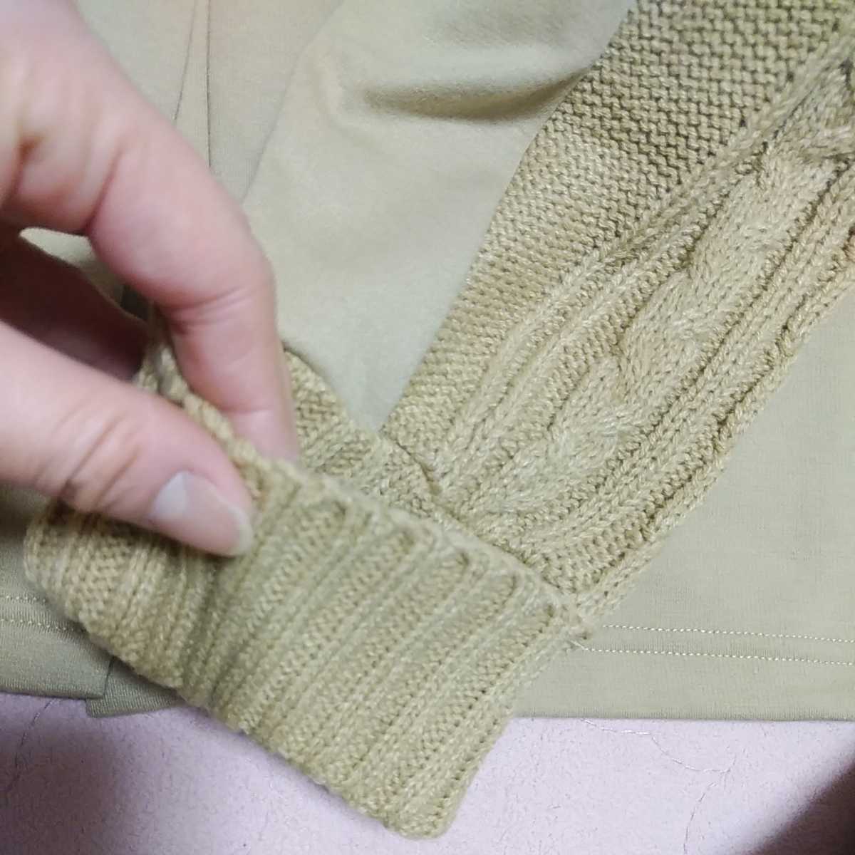 カットソー生地に肩 袖口 ポケット入り口にニットがあしらってあり、可愛いです。