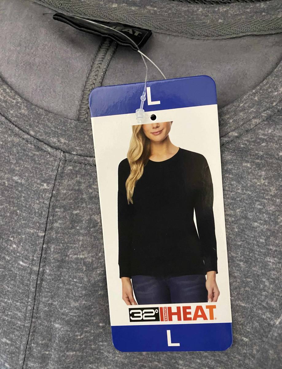新品 L ★ コストコ 32 HEAT レディース フリース トップス ヘザー グレー 裏起毛 カットソー Tシャツ スウェット ヒート 長袖 ロンT