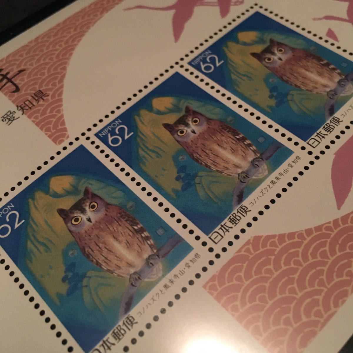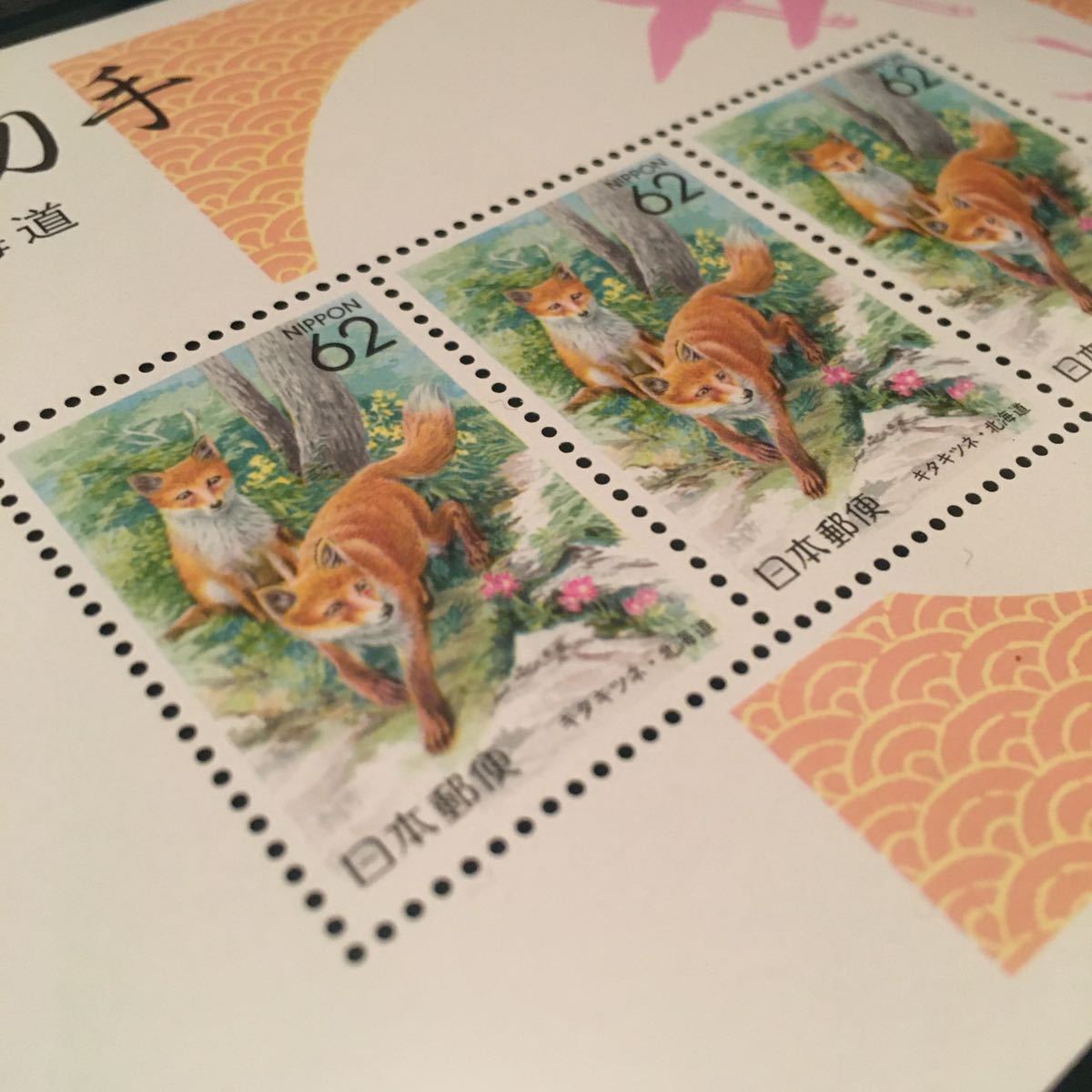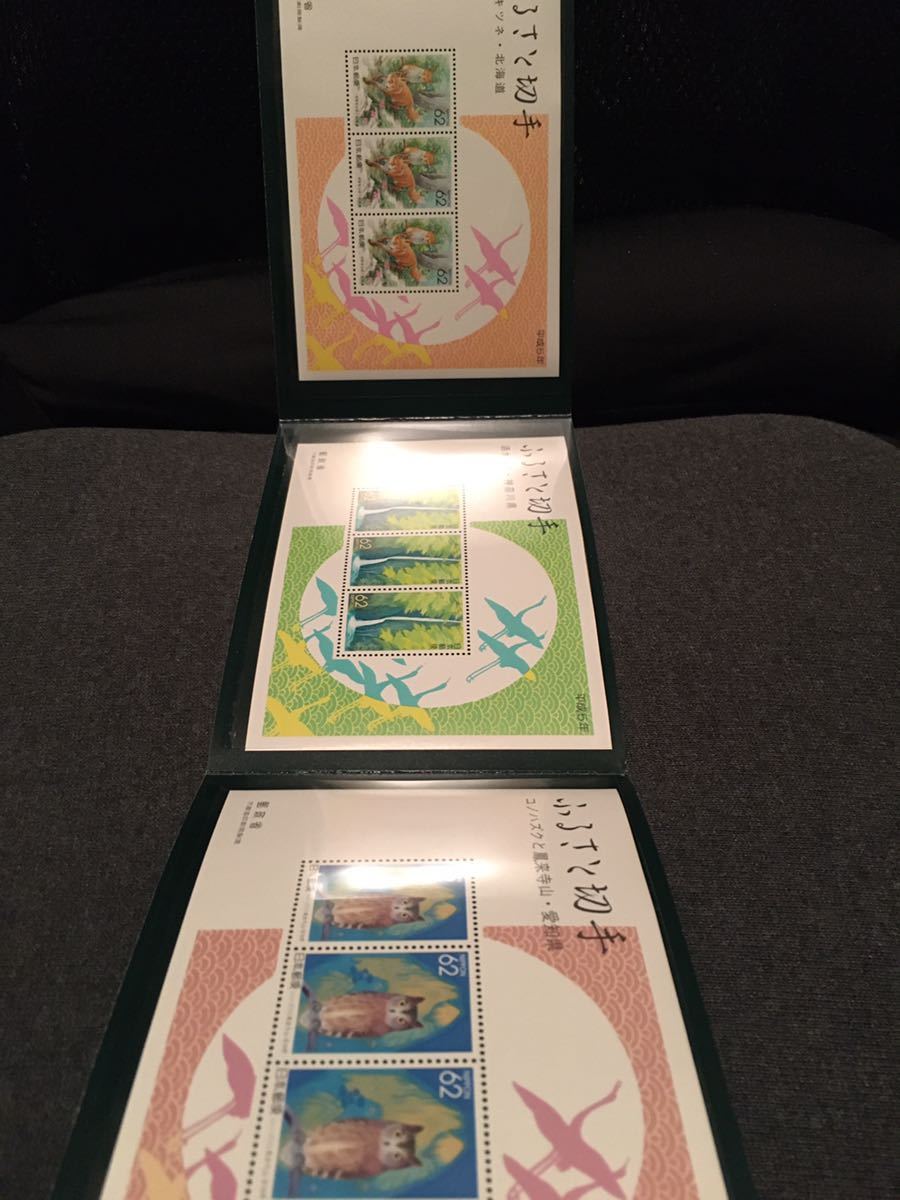 3種類(キタキツネ/酒水の滝/コノハズクと鳳来寺山)の切手シートと豪華アルバム