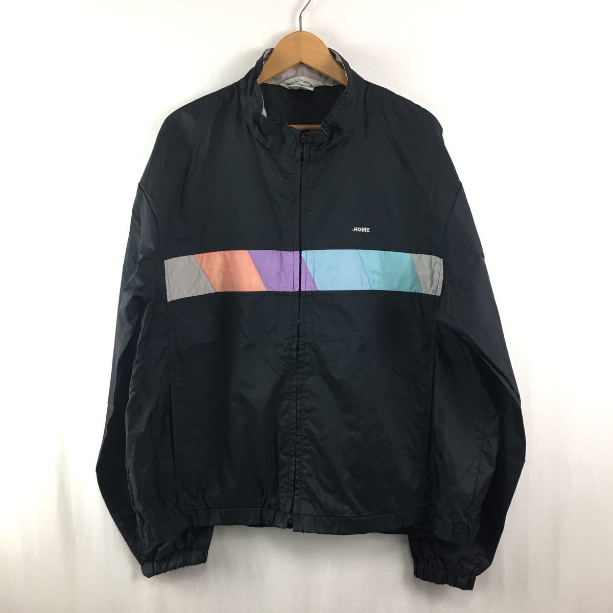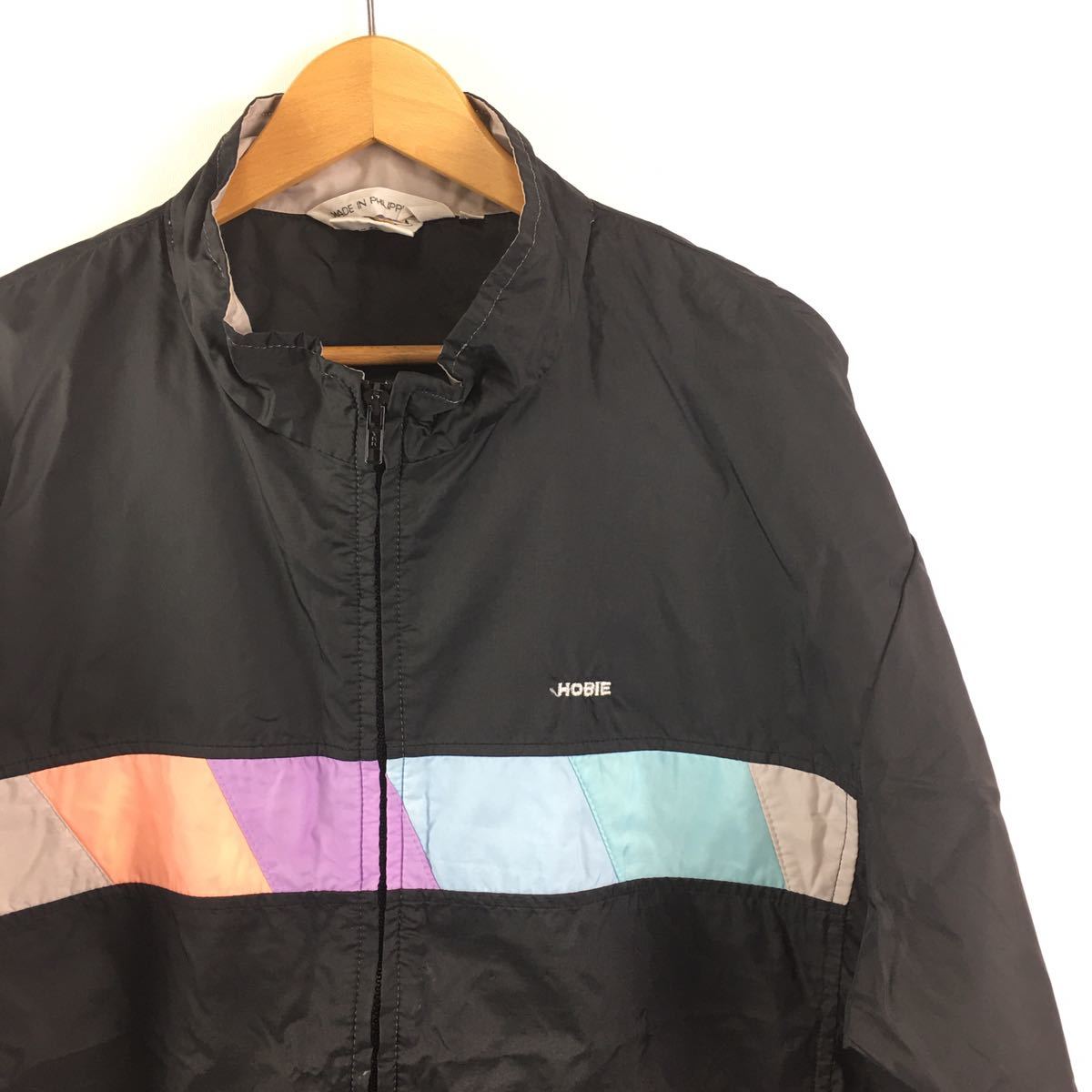 ビンテージ 90s【OLD HOBIE】ナイロンジャケット 黒 XL ホビー レインボー ブラック ジャンパー 古着 サーフ OP 80s アメカジ ハイネック