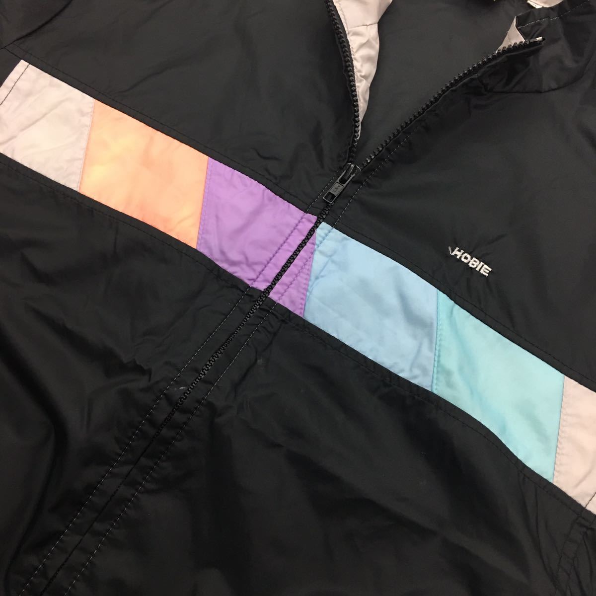 希少 90s ビンテージ【HOBIE】淡虹 ナイロン ジャケット 黒 XL ブラック ジップ ジャンパー 刺繍ロゴ 古着 オールドサーフ アメカジになります。