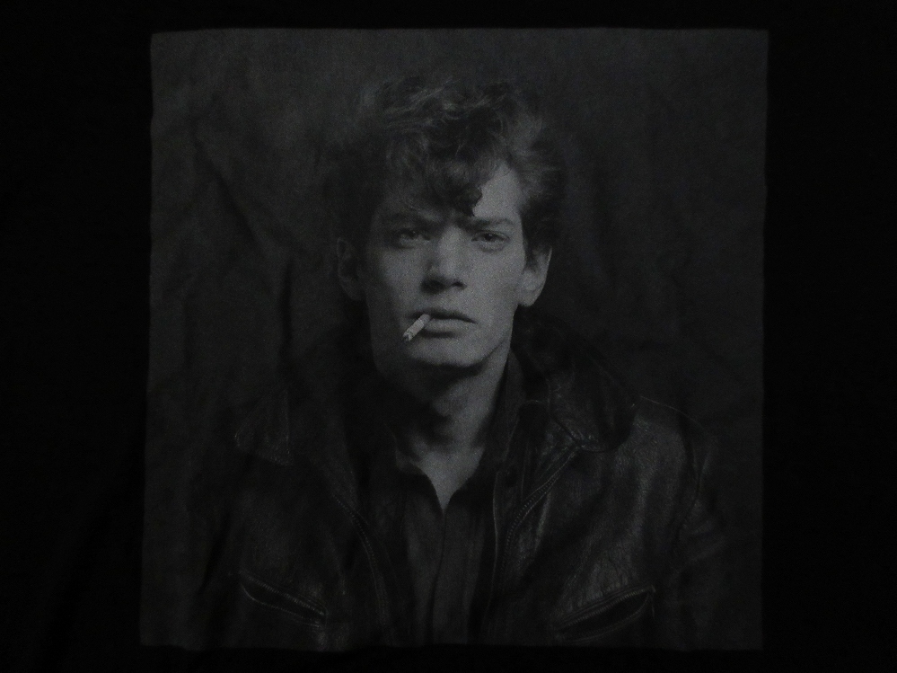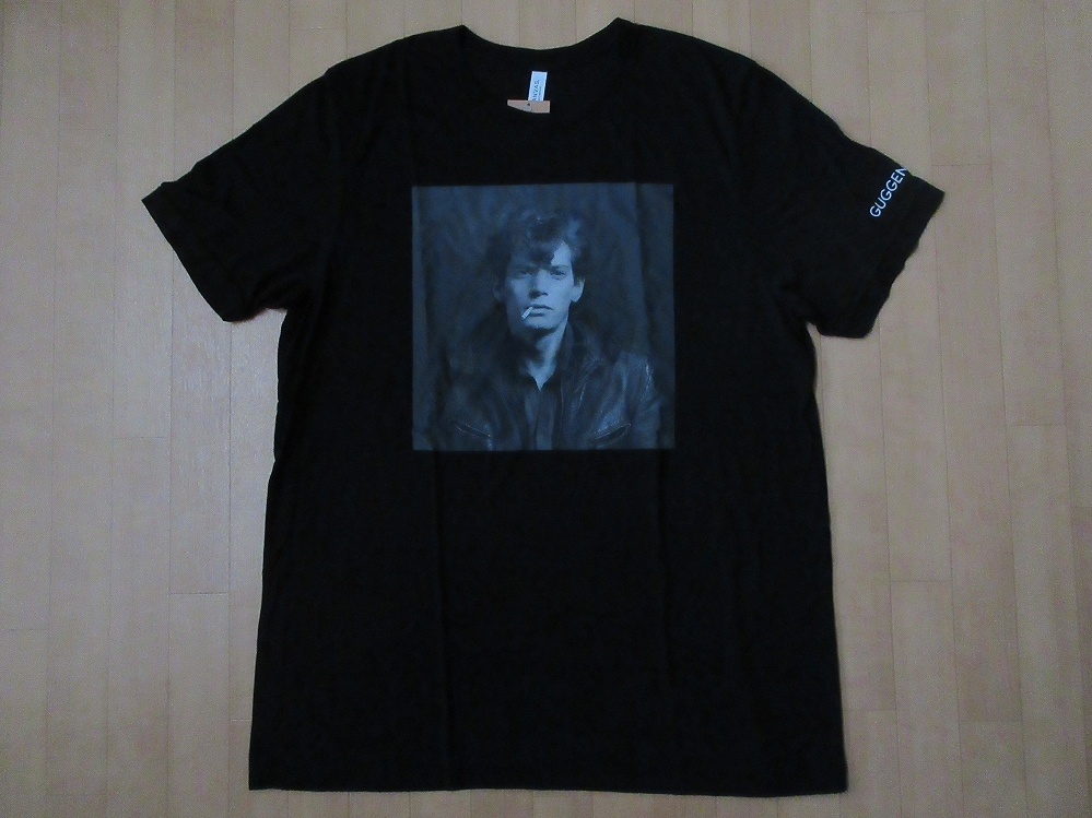 2019年(2019年1月25日~7月10日、第2期・2019年7月24日~2020年1月5日)に、アメリカ・ニューヨーク・マンハッタン・アッパー・イースト・サイドにある、「Solomon R. Guggenheim Foundation(ソロモン・R・グッゲンハイム財団)」が運営する「Guggenheim Museum(グッゲンハイム美術館) 」で開催された、〔Robert Mapplethorpe(ロバート・メイプルソープ)〕氏の回顧展「Implicit Tensions: Mapplethorpe Now(インプリシット・テンションズ:メイプルソープ・ ナウ)」を記念してリリースされた、Tシャツ表面に、インパクトのある、1980年に撮影された、煙草(タバコ)をくわえた〔Robert Mapplethorpe(ロバート・メイプルソープ)〕氏自身の「セルフポートレイト写真(自画像/self-portrait)」のプリント、Tシャツ裏面上部付近に「MAPPLETHORPE」のプリント、左腕に「GUGGENHEIM」のプリントが施された、〔Implicit Tensions: Mapplethorpe Now・セルフポートレイト・フォト・Tシャツ〕になりますので、現在では大変希少かつ、極めて入手が困難かと思われます。
