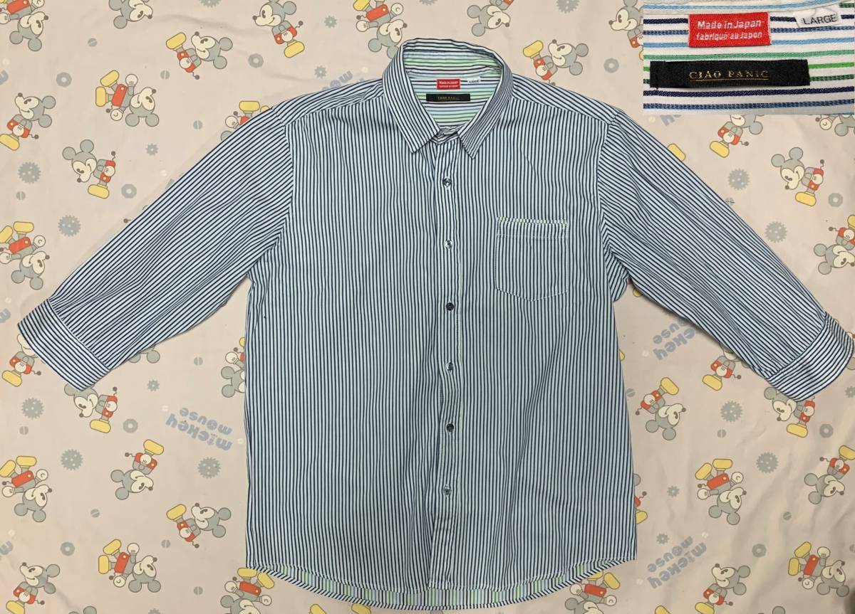 日本製 CIAO PANIC チャオパニック コットンストライプ7分袖シャツ Lサイズ